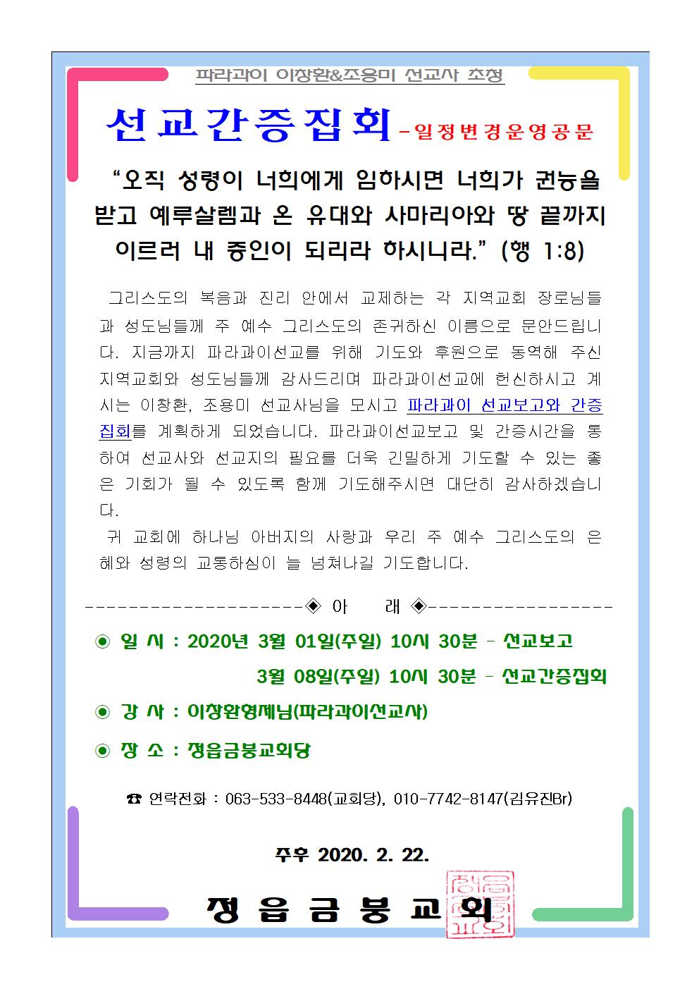 <선교간증집회 일정변경 안내&기도요청>