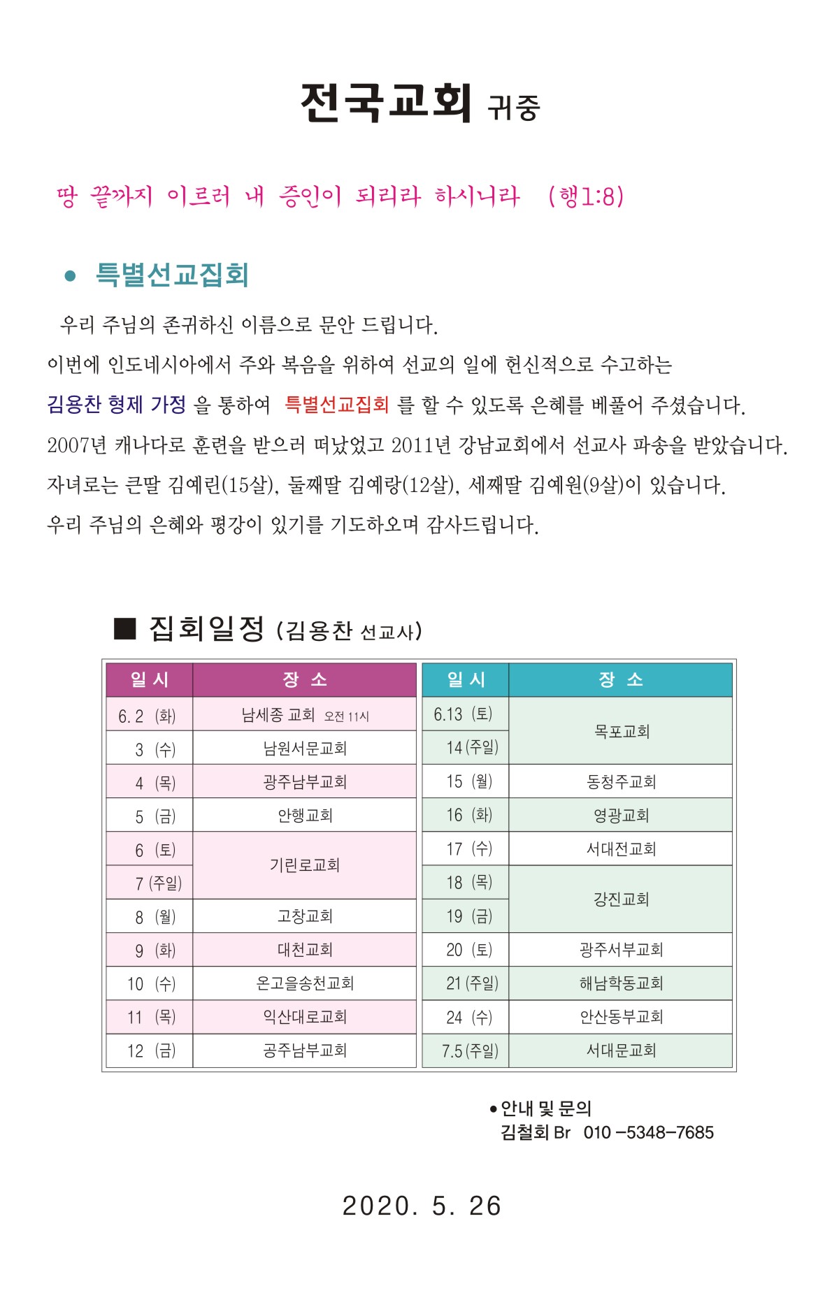 [지역교회] (인도네시아) 김용찬 선교사 특별집회
