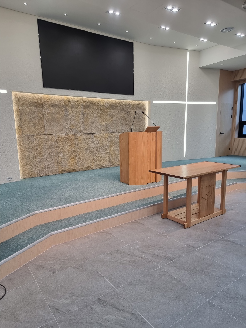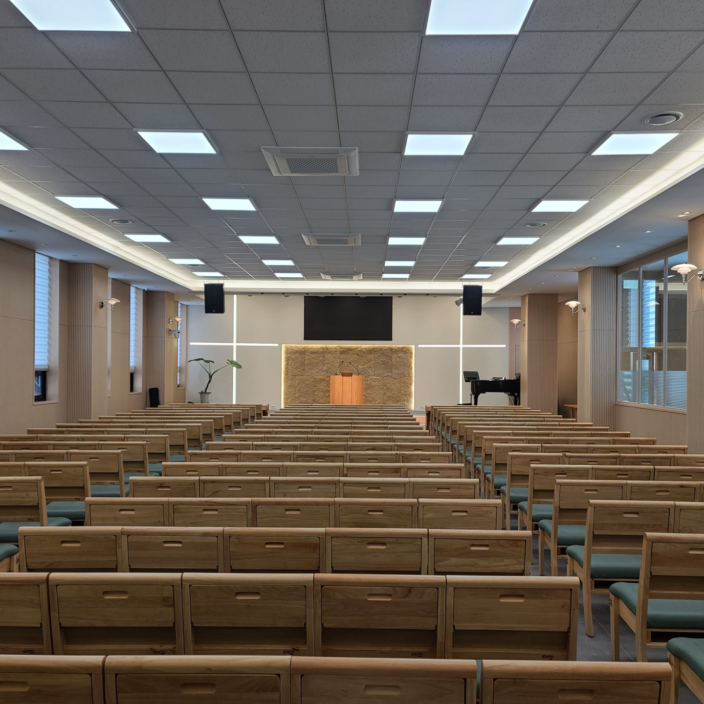 시설 개선은 1층(식당 및 주방), 2층(본당), 3층(보조강당) 등 모든 시설에 대한 창호시설, 교회 외벽개선, 방송시설, 조명시설, 의자 교체, 교제실 및 엘리베이터 설치와 주차장 시설개선을 하였습니다.
