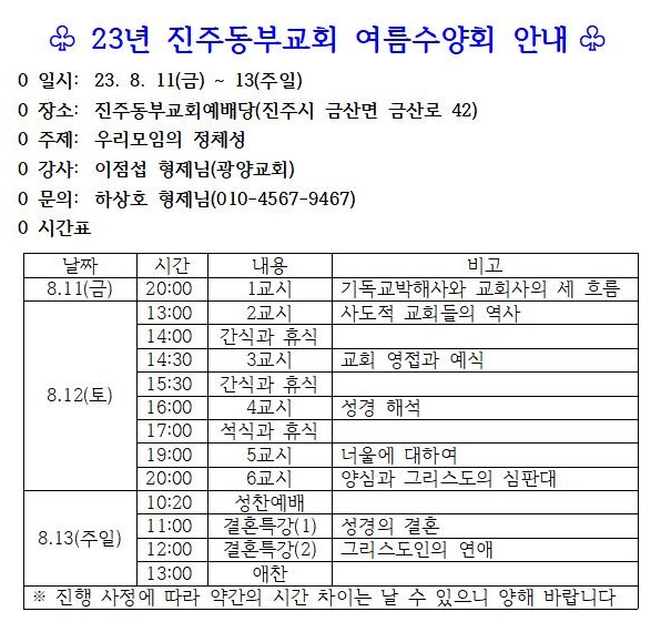[지역교회] 진주동부교회 여름수양회(8.11~13)
