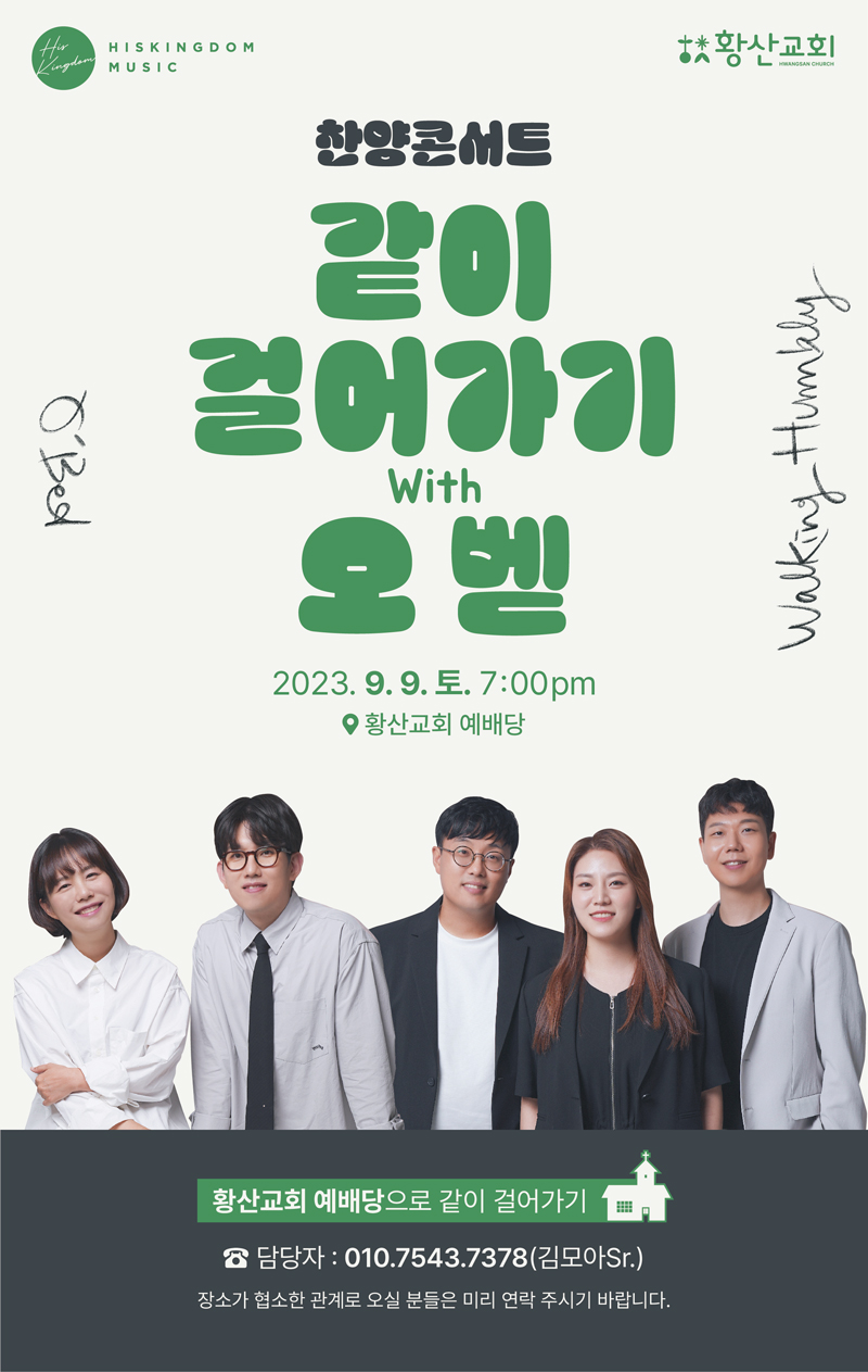 9월 2일과 9월 9일 경기 유평교회와 경북 황산교회에서 찬양콘서트가 있습니다.