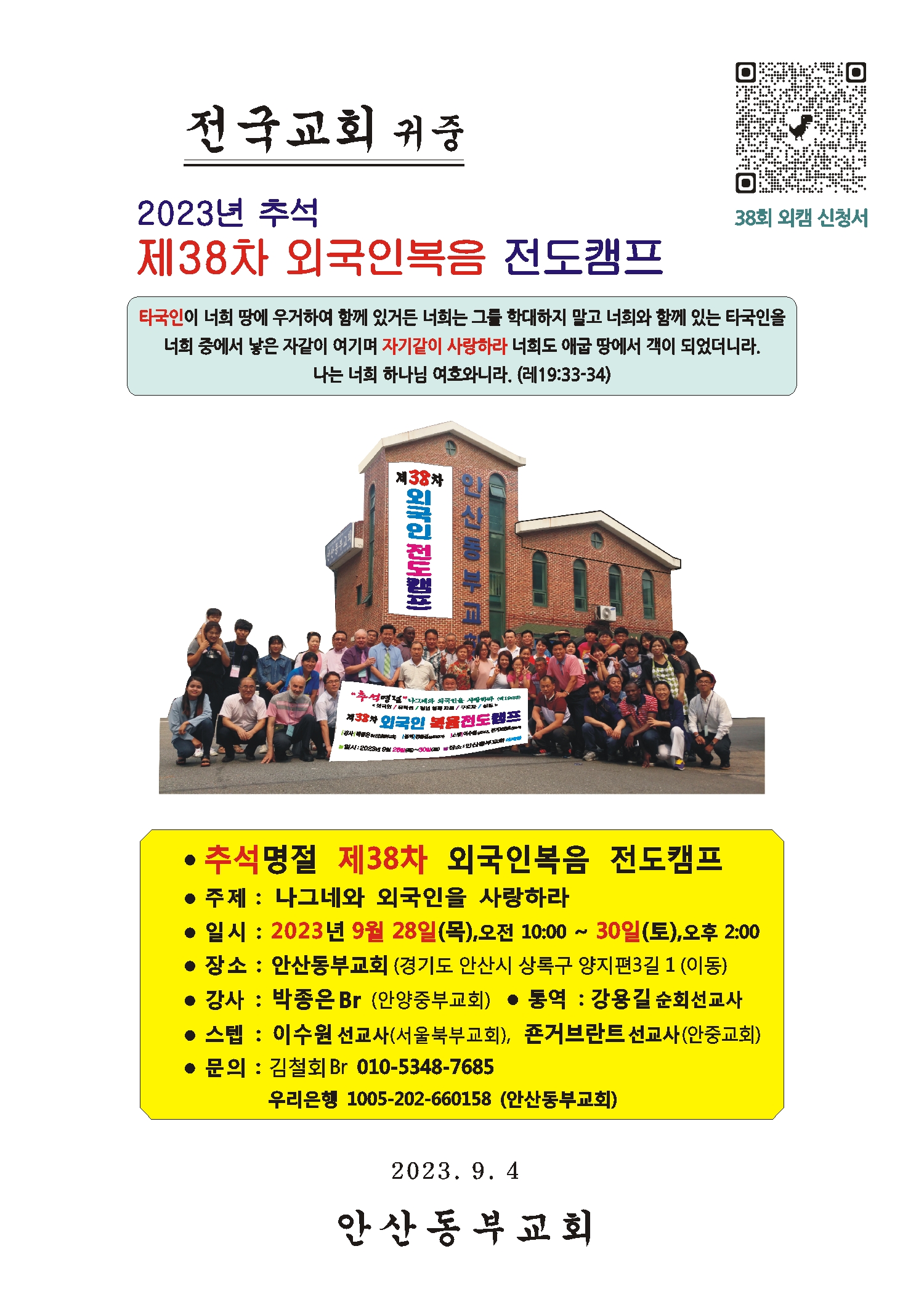 [지역교회] 제38차 (추석)외국인복음전도집회.안내