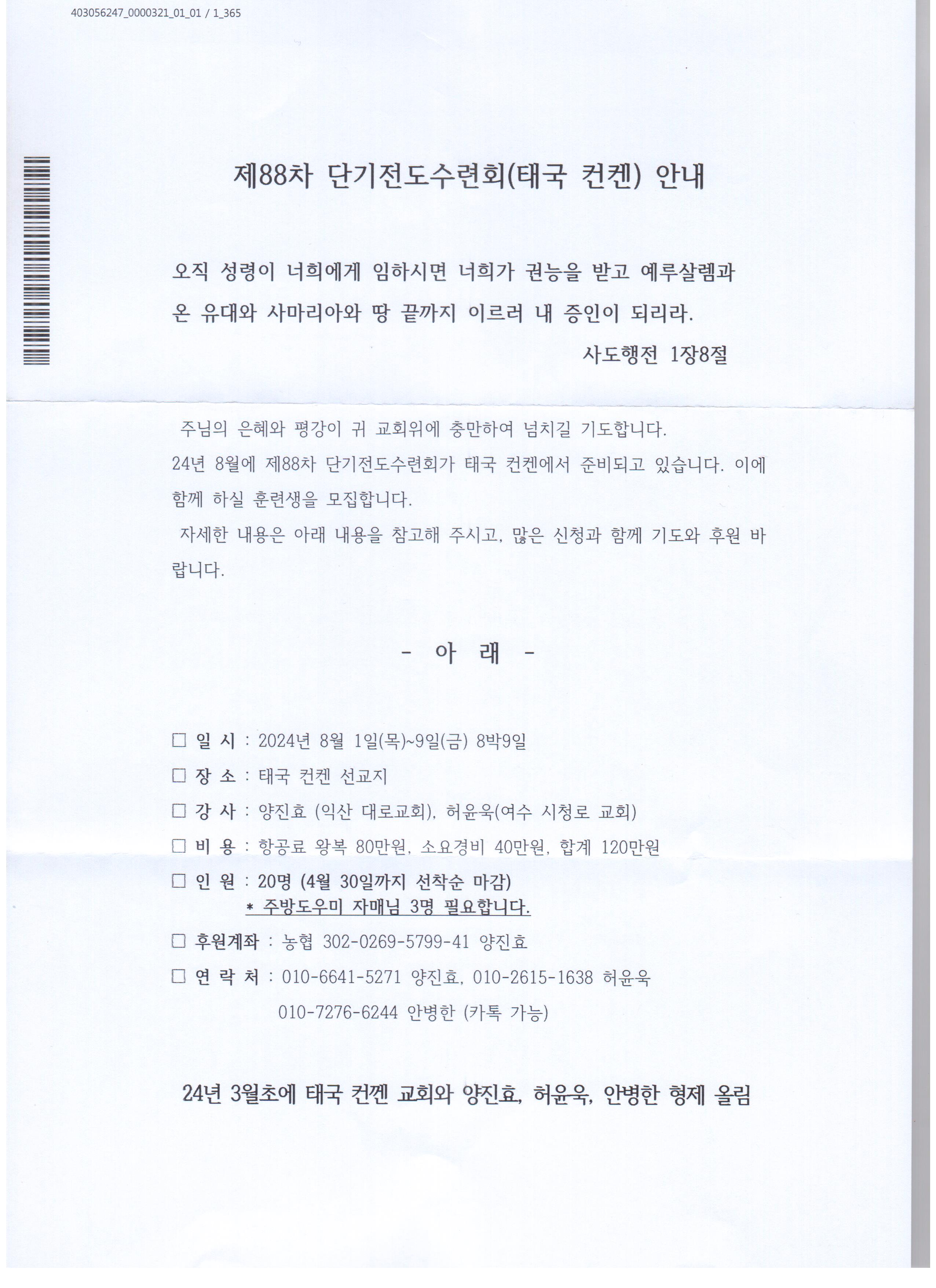 [선교] 제 88차 단기전도수련회 (태국 컨켄)