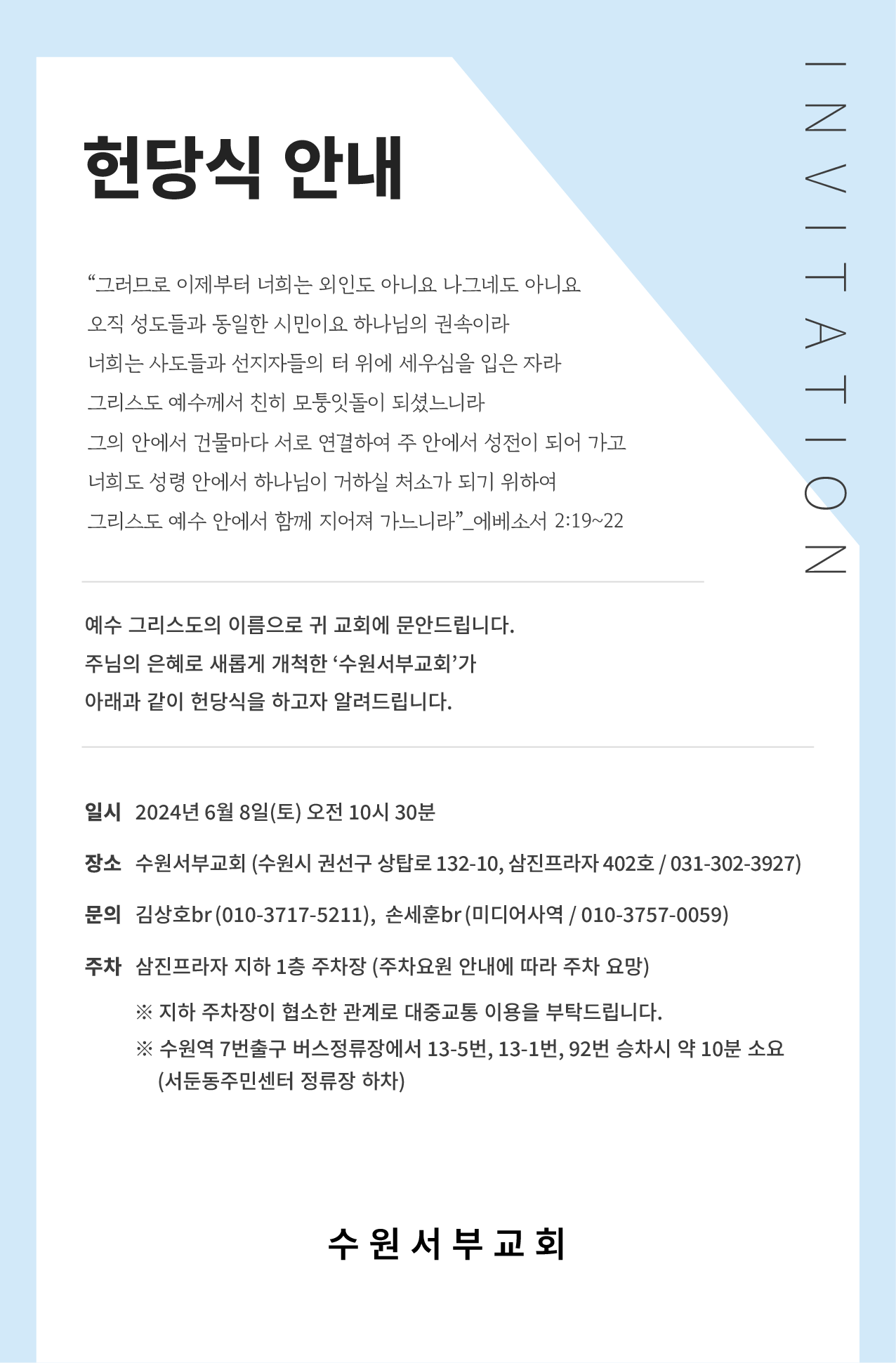 [지역교회] 수원서부교회 헌당식 (6월 8일)