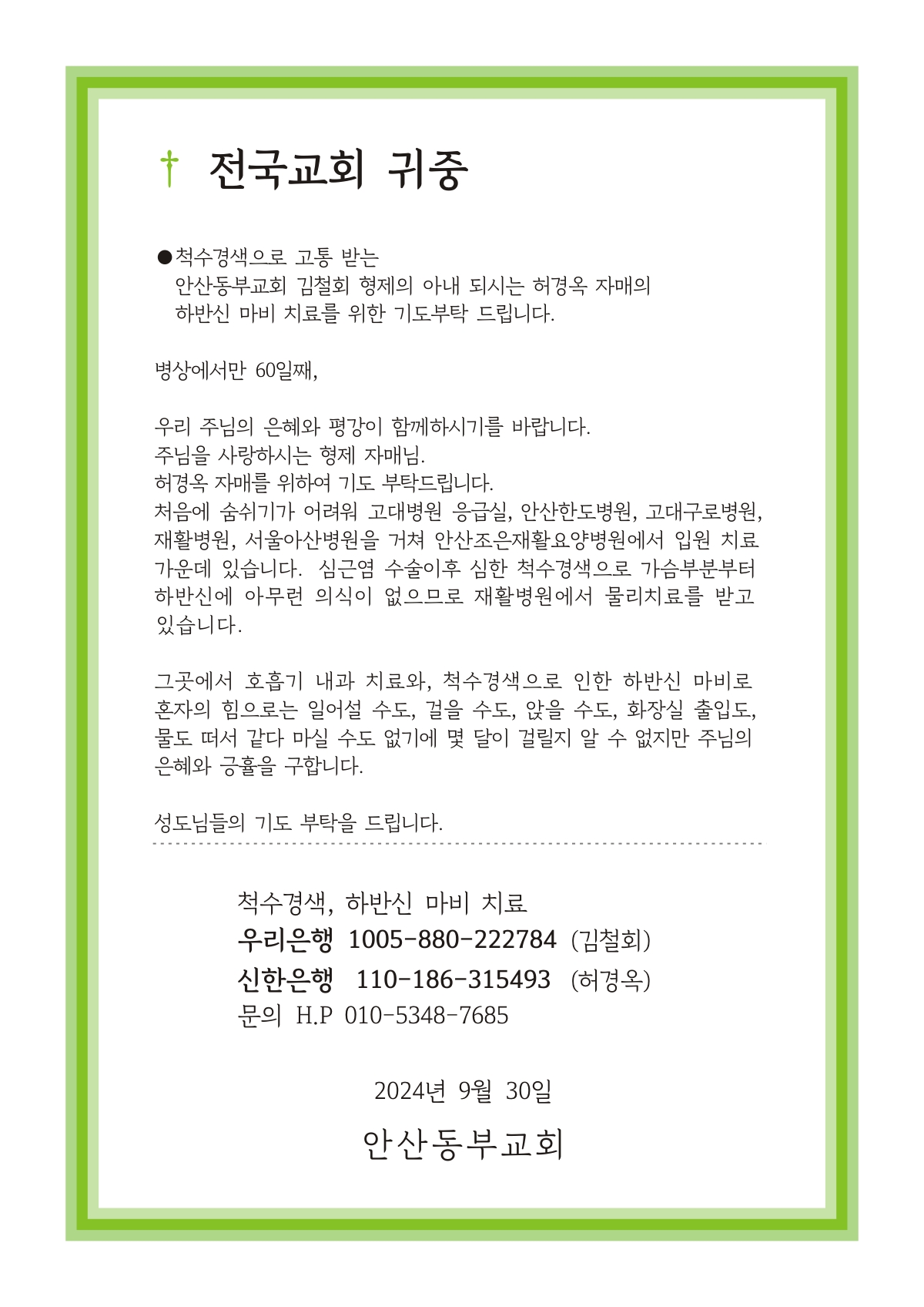 [지역교회] 안산동부교회 허경옥자매 위한 기도부탁드립니다.