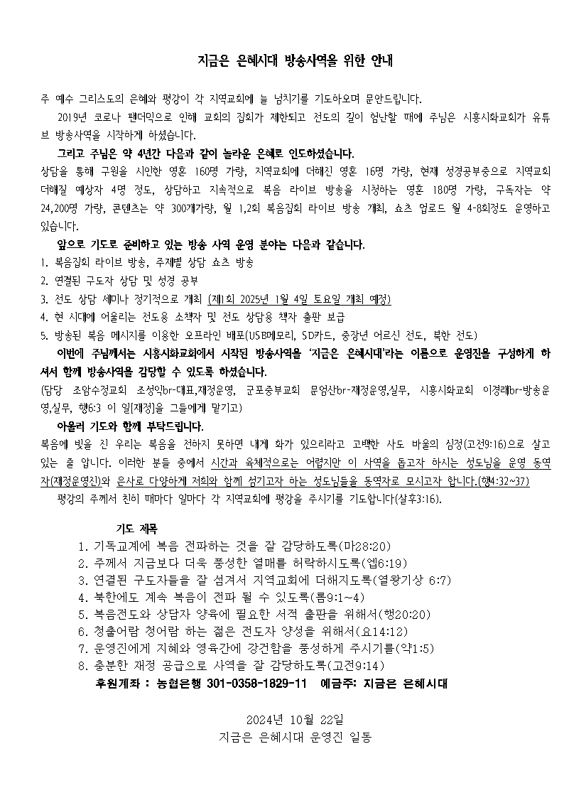 [선교] '지금은 은혜시대' 방송사역을 위한 안내