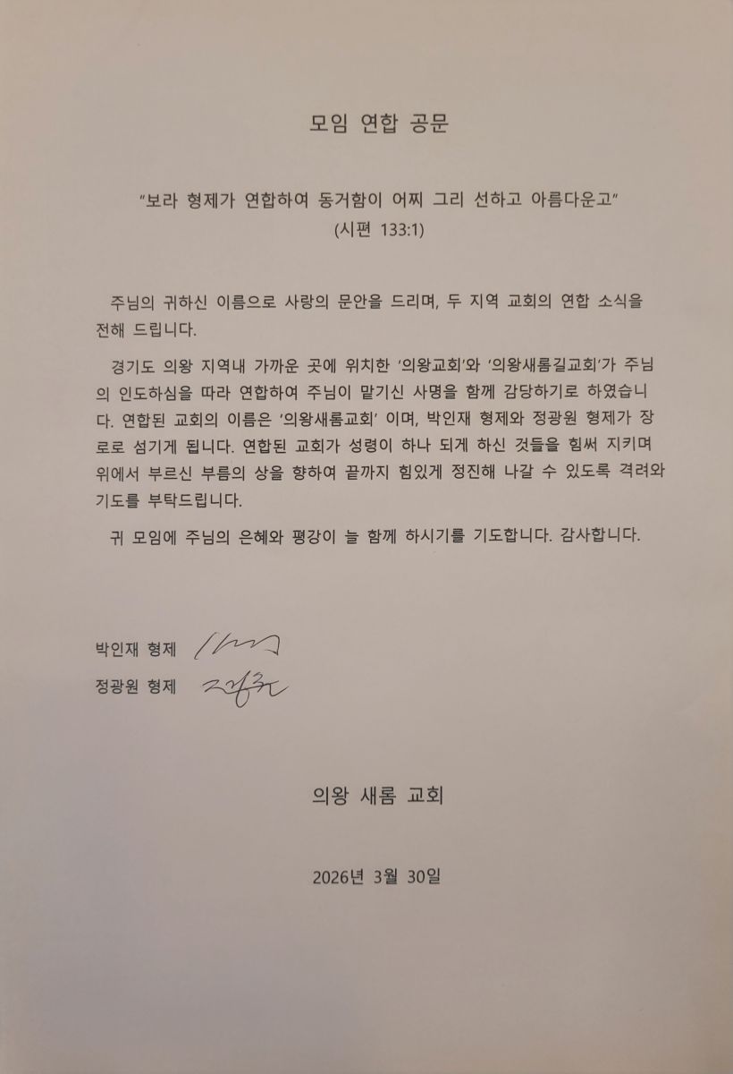 [지역교회] 의왕새롬교회 (의왕교회, 의왕새롬길교회 연합 건)