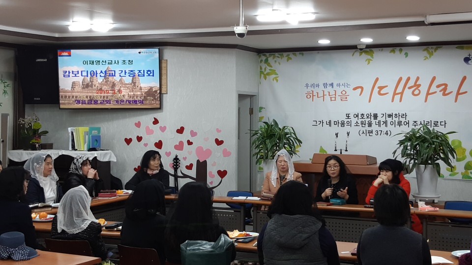 - 안녕하세요. 오늘(3.3) 오후 2시부터 캄보디아선교사이신 이재영자매님을 모시고 정읍금붕교회 기혼자매회 주관으로 간증집회를 갖게 되었습니다.