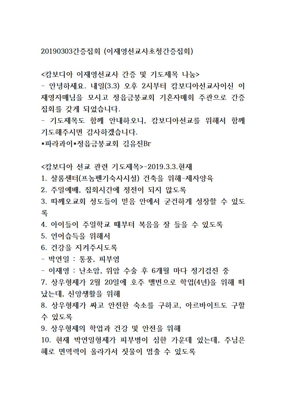 <0303기도요청> 캄보디아 이재영선교사 간증 및 기도제목 나눔