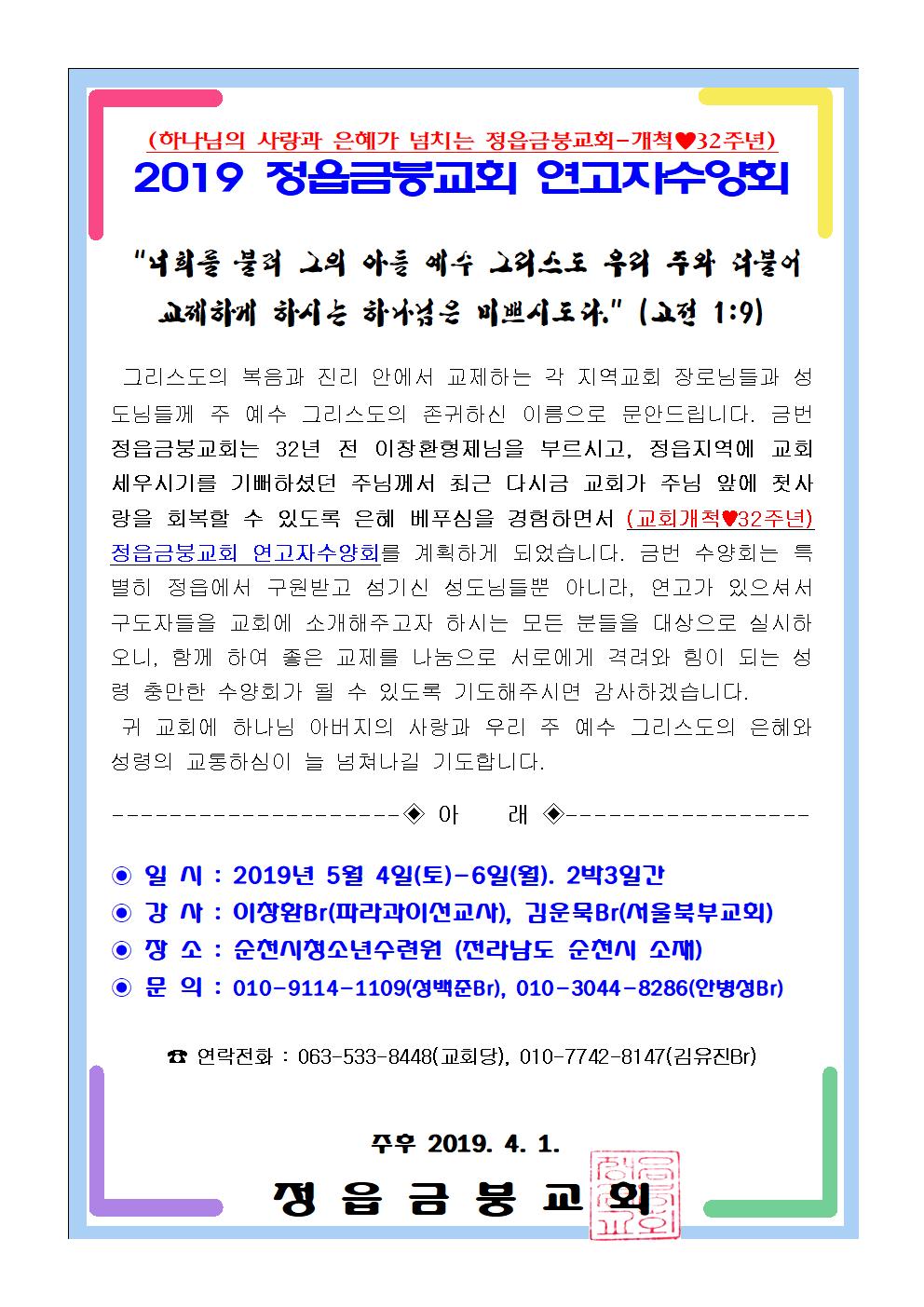 <0419기도요청> 2019 정읍금붕교회 연고자수양회 참여요청