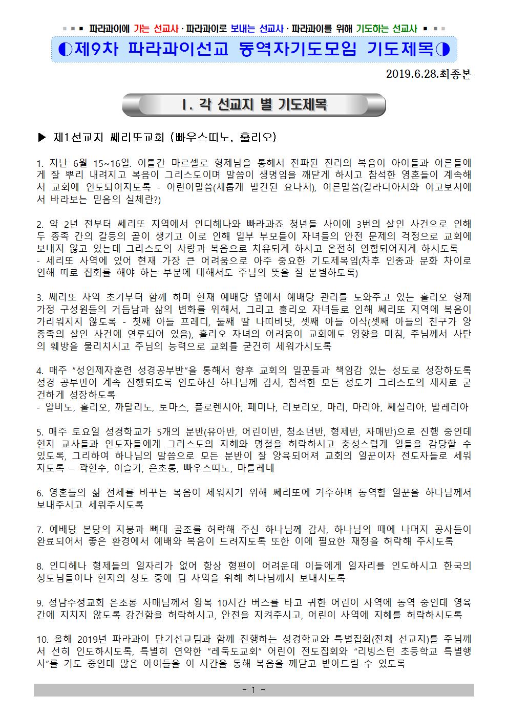 ◐제9차 파라과이선교 동역자기도모임◑