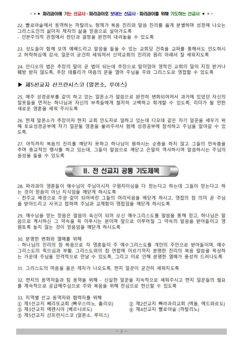 ② 대상 : 파라과이선교를 위해 기도하시는 모든 성도님들(파라과이선교밴드 포함)