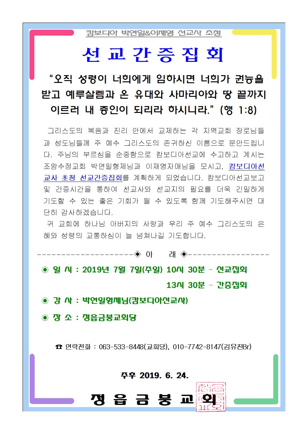 <선교간증집회 기도요청>