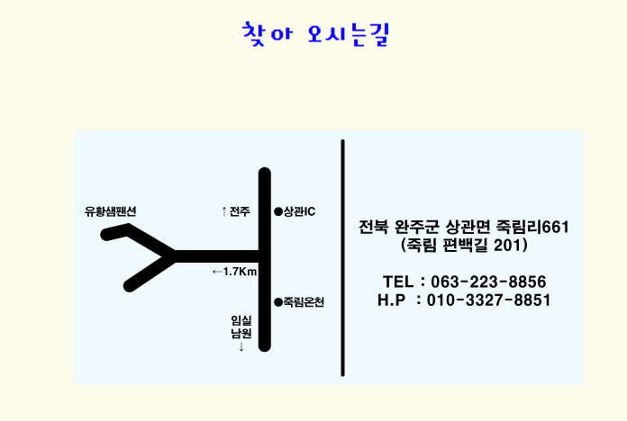③ 장소 : 편백숲 유황샘팬션-전북 완주군 상관면 죽림리 661(죽림 편백길 201)