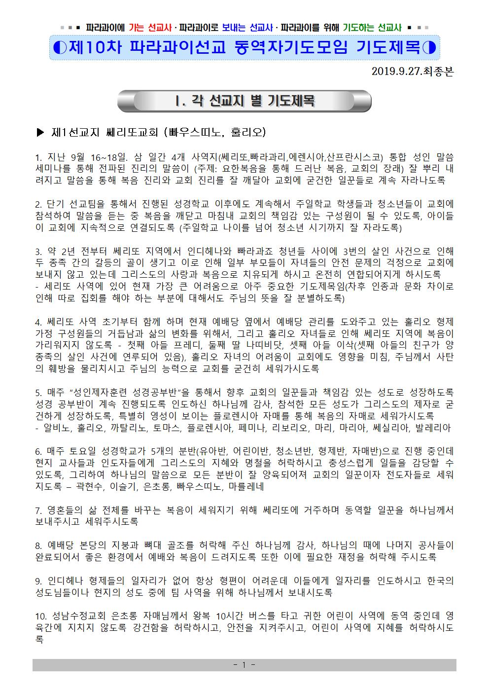 [선교] ♥파라과이선교 동역자기도모임(10차)
