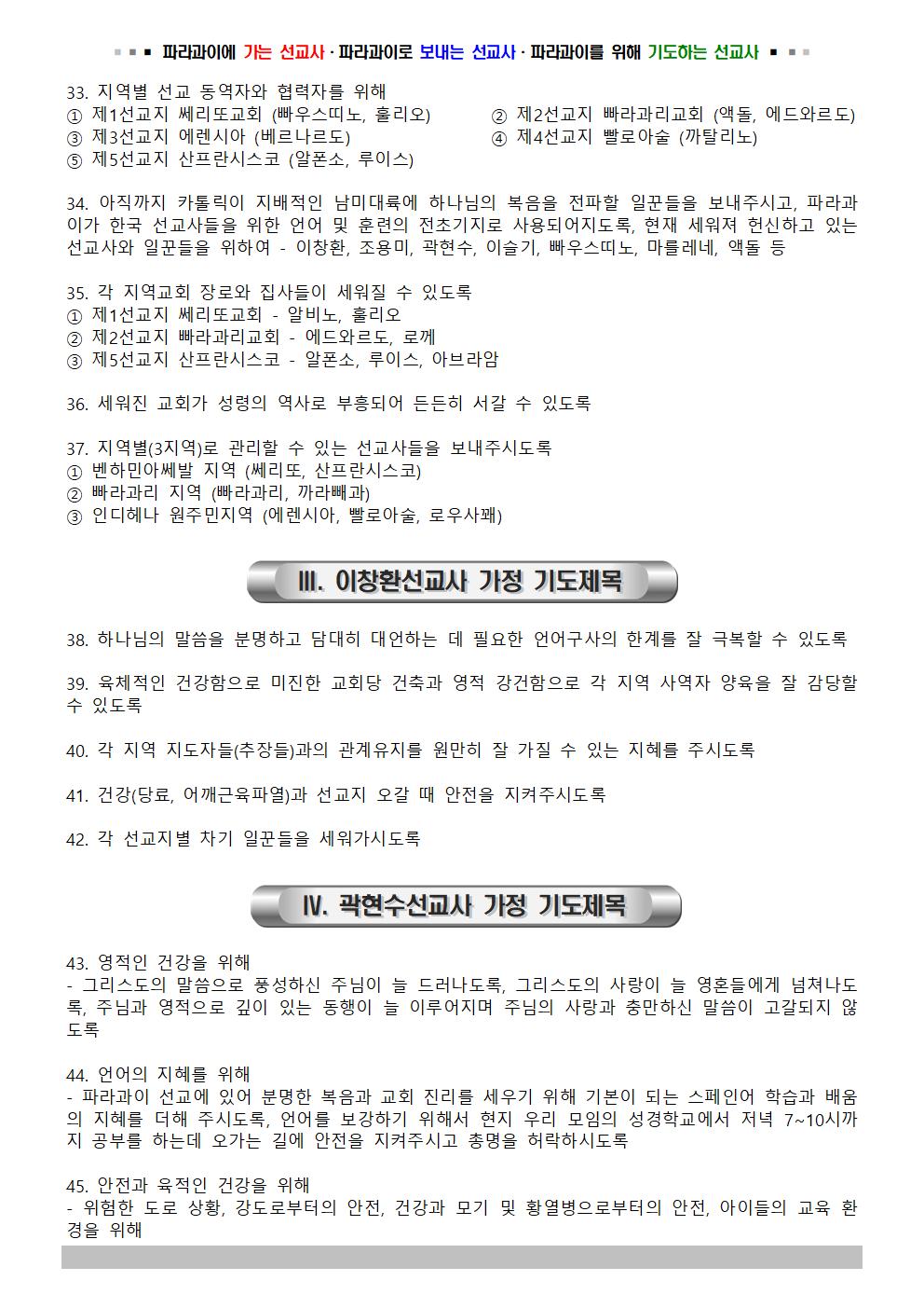 ④ 내용 : 파라과이선교를 위한 기도회, 파라과이단기선교 팀별모임 등