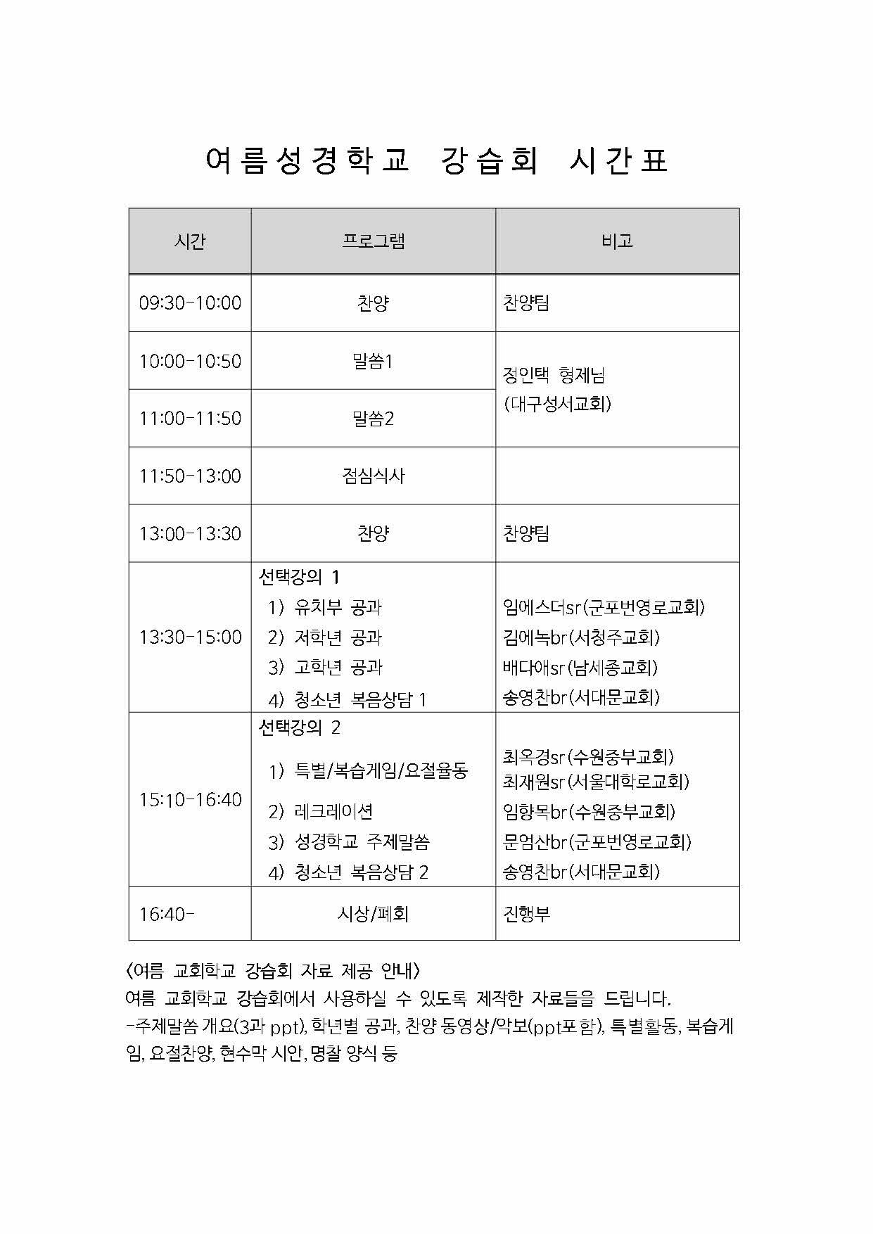 [강습과 세미나] 예닮이 여름 교회학교 강습회