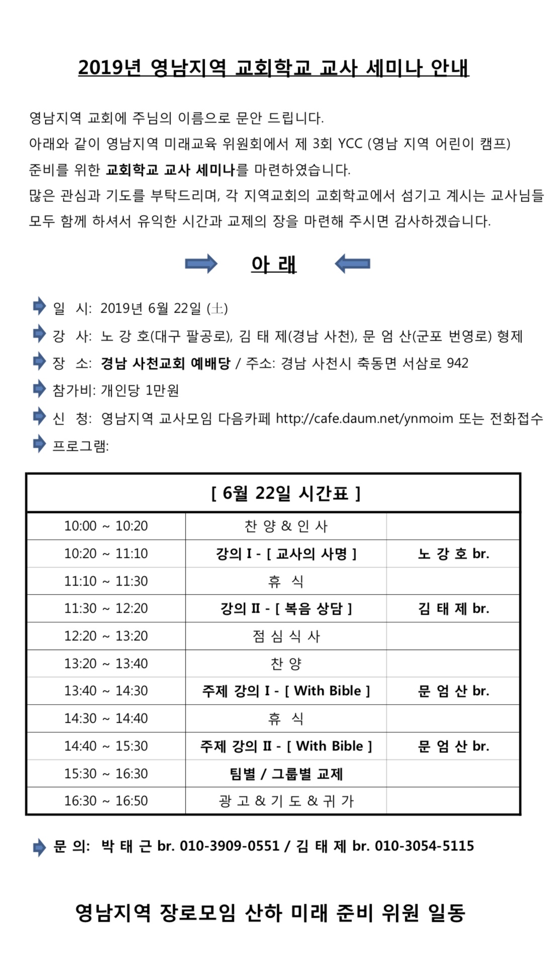[강습과 세미나] 영남지역 교회학교 교사 세미나