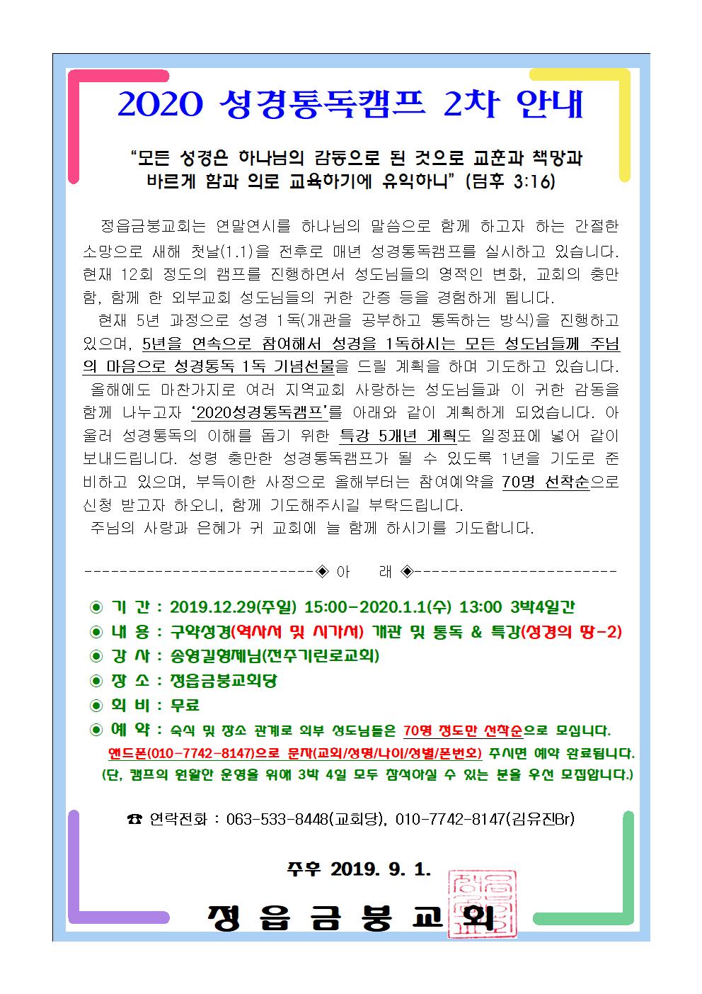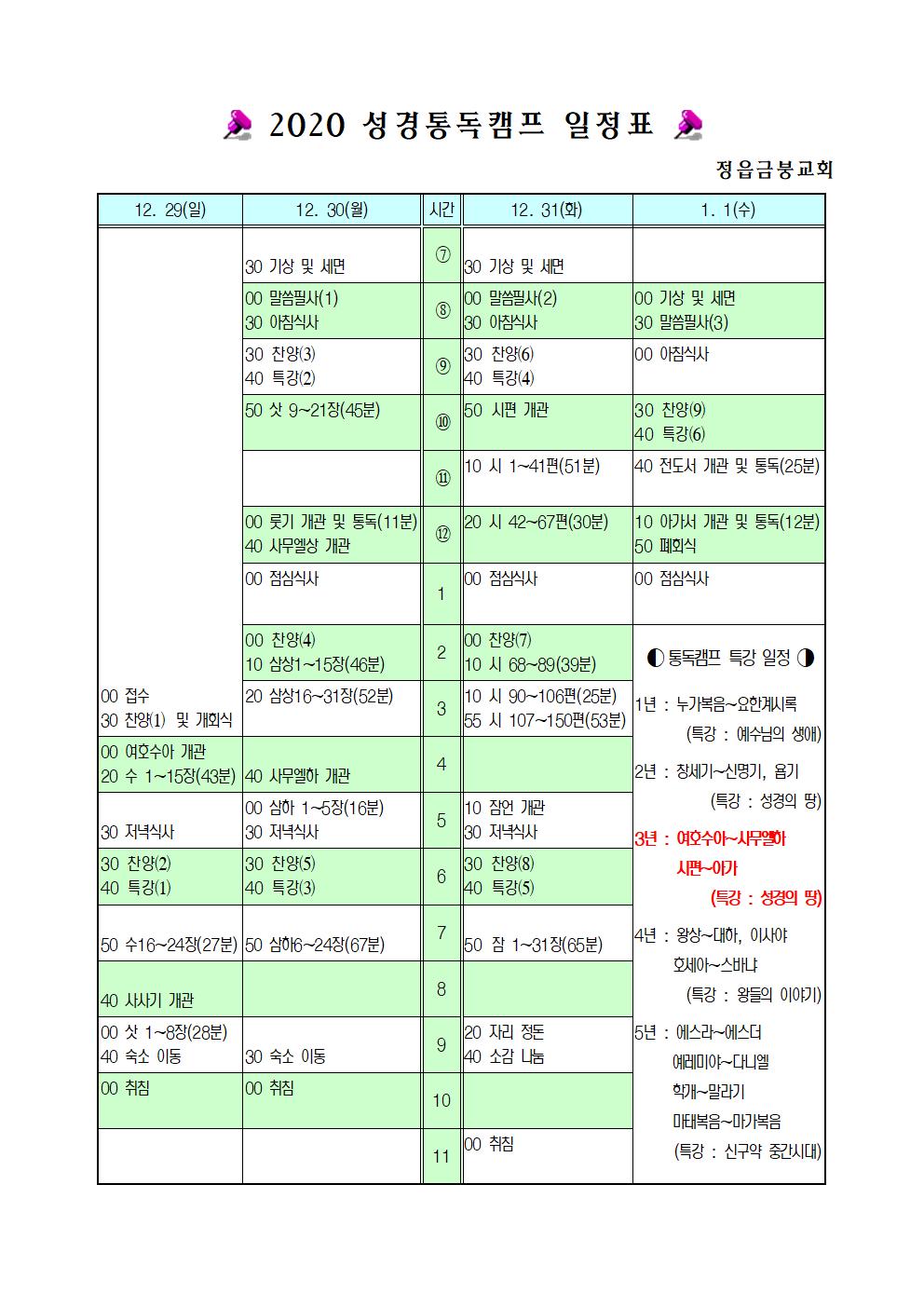 [캠프와 수련회] ♥2020성경통독캠프-2 (2019.12.29~2020.1.1)