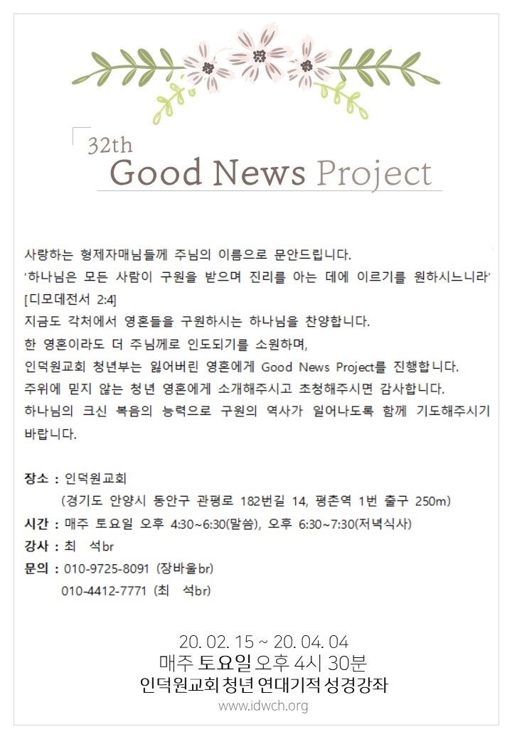 [강습과 세미나] 인덕원교회 청년 연대기적 성경강좌