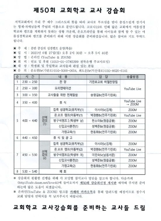 [강습과 세미나] 교회학교 교사 강습회 (6월 27일)