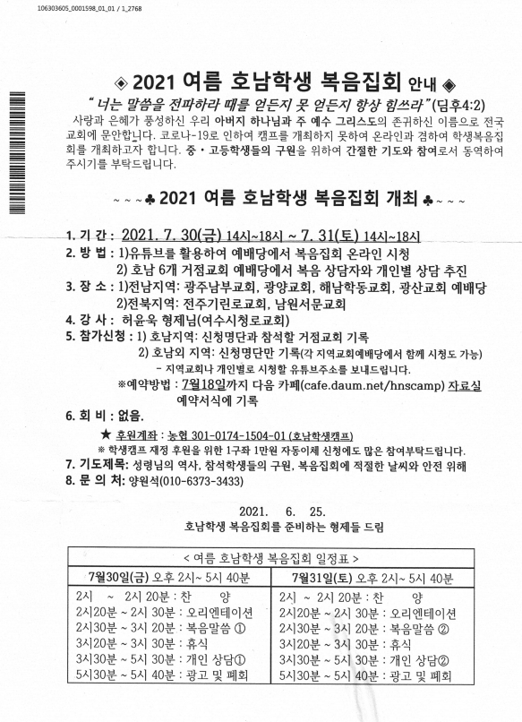 [캠프와 수련회] 호남학생 복음캠프 (7월 30-31일)