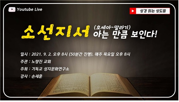 9월 2일부터 매주 목요일 오후 8시. 소선지서 특강 유튜브 라이브
