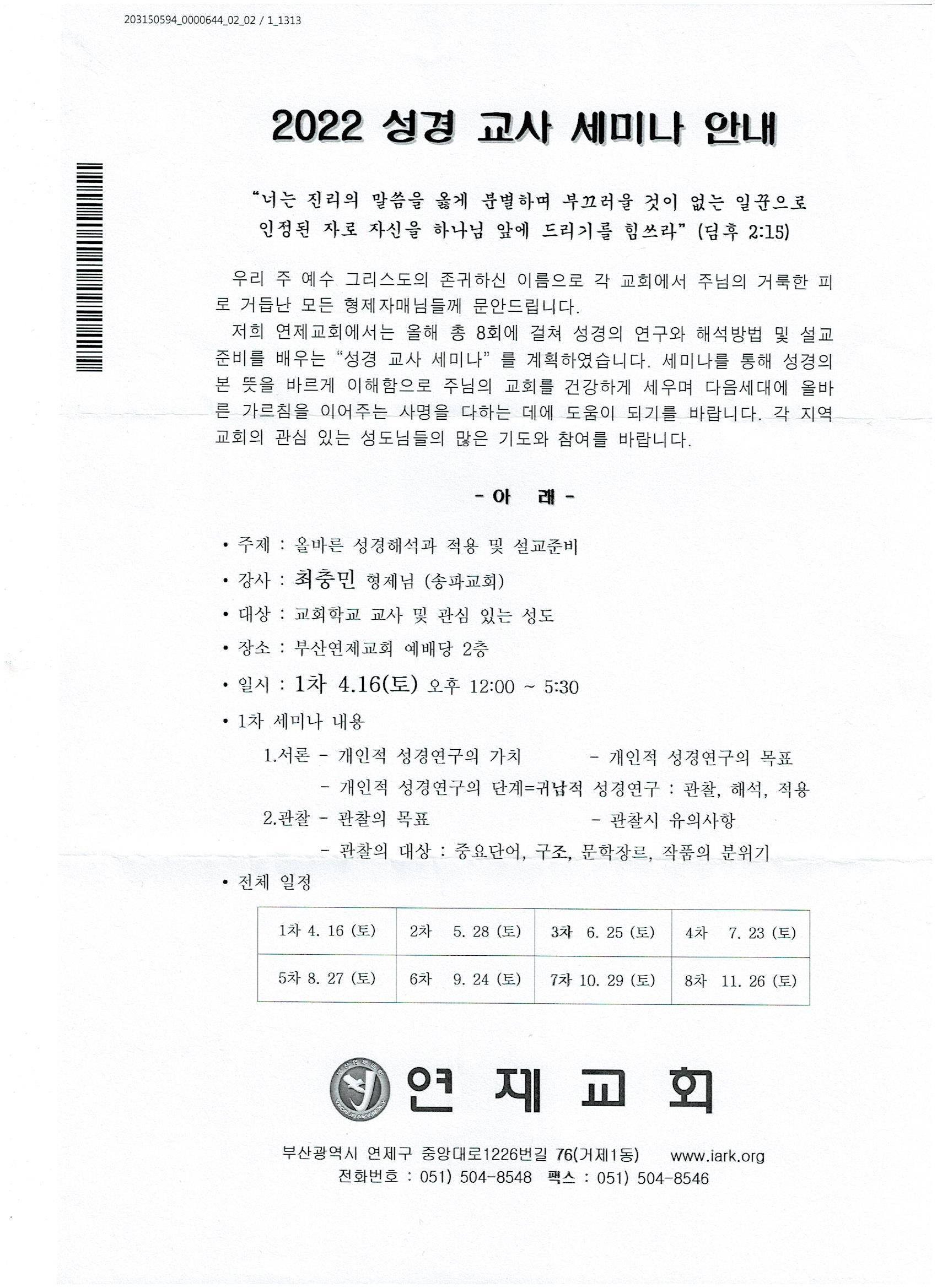 [강습과 세미나] 성경교사 세미나 (부산연제교회)