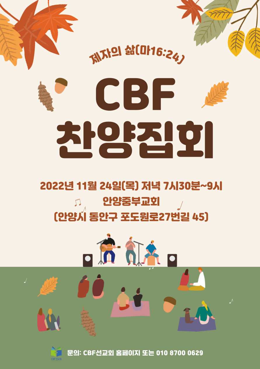 11월 24일(목) 저녁 7시30분~9시에 CBF선교회에서 찬양집회를 합니다.