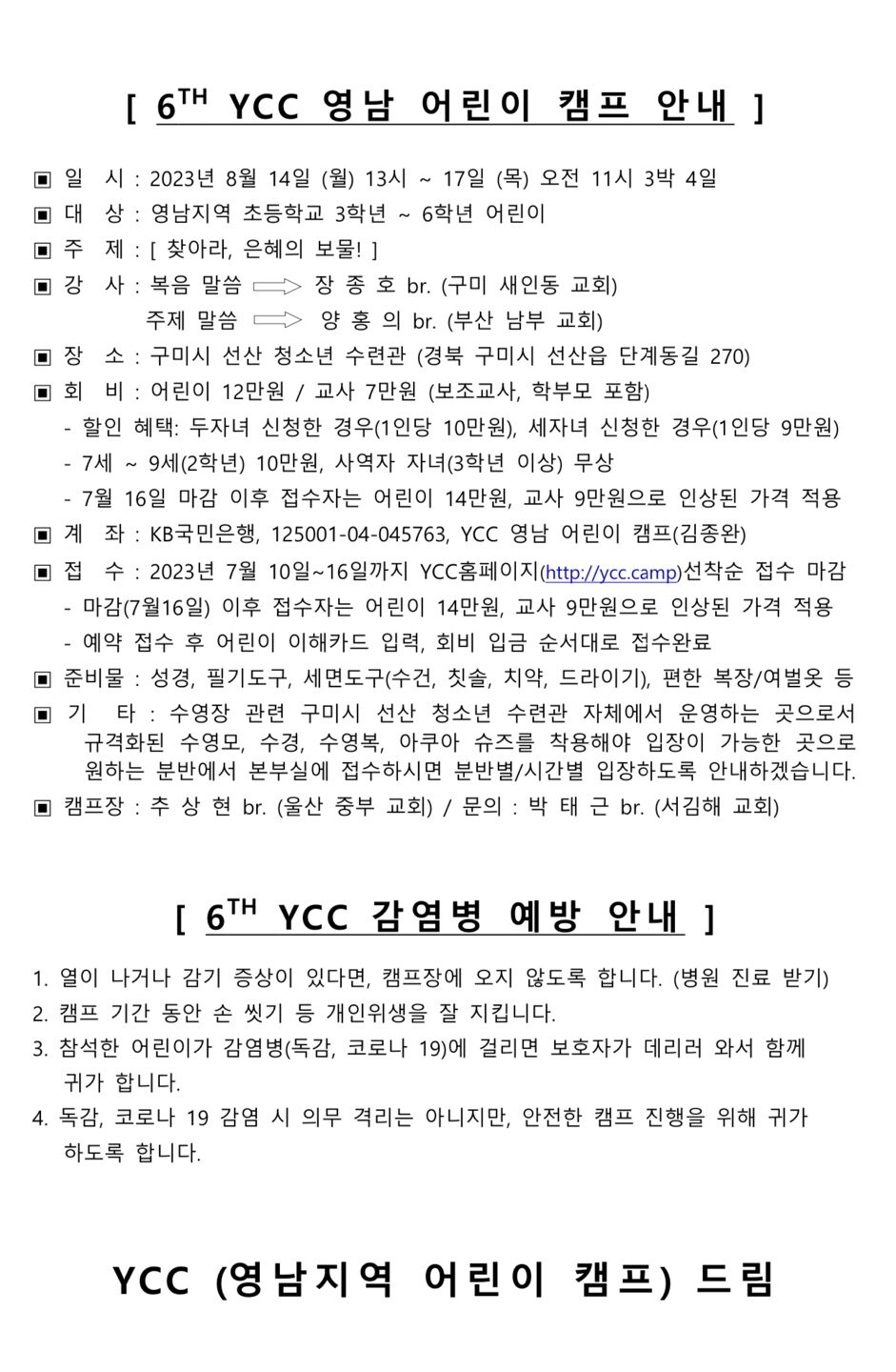 [캠프와 수련회] 제6회 YCC 영남 어린이 캠프 2차 공문