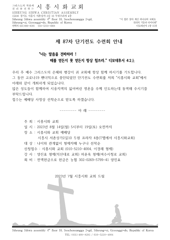 [캠프와 수련회] 재 87차 단기전도 수련회_시흥시화 교회