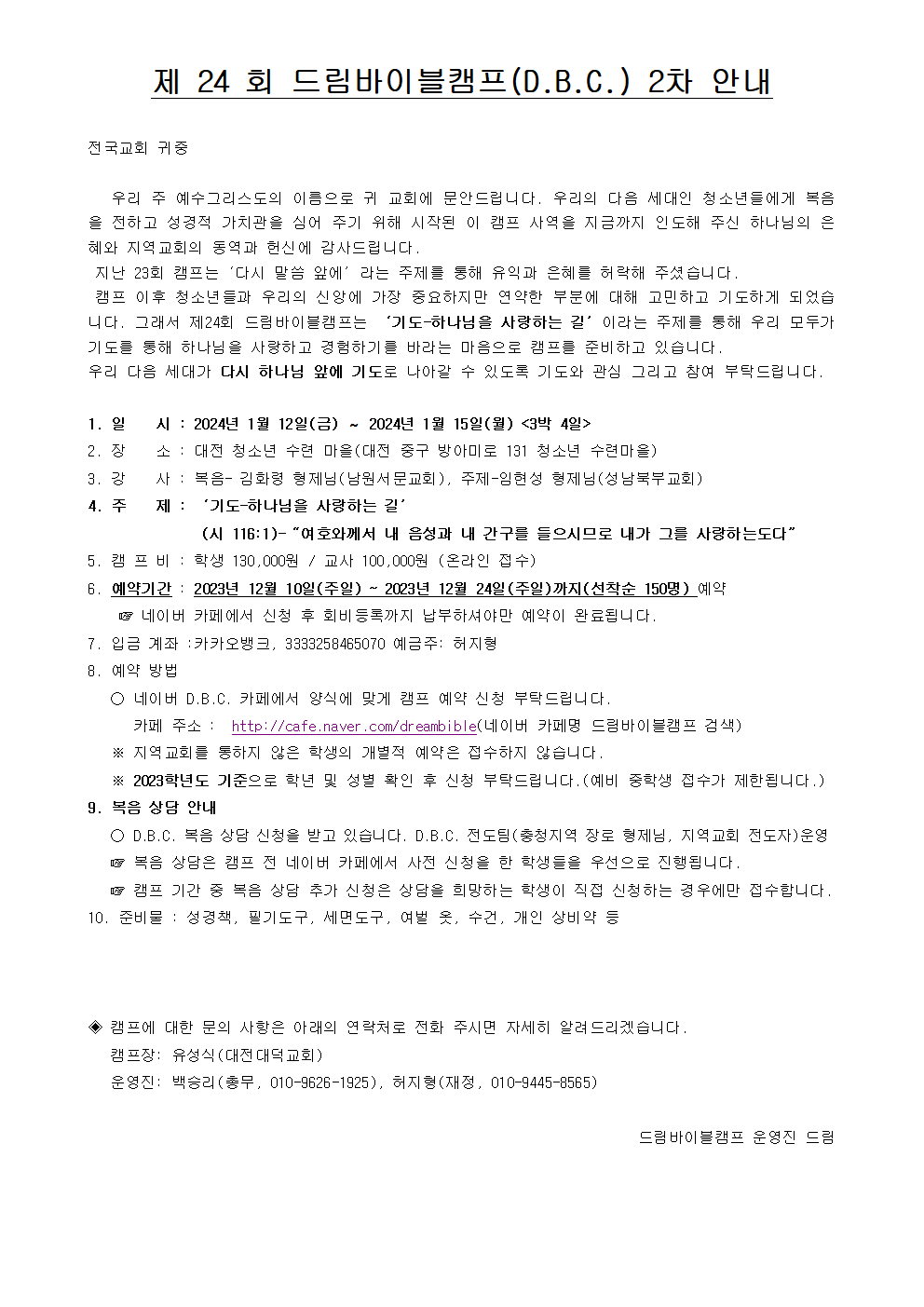 [캠프와 수련회] 제 24회 드림바이블캠프(D.B.C.) 2차 안내