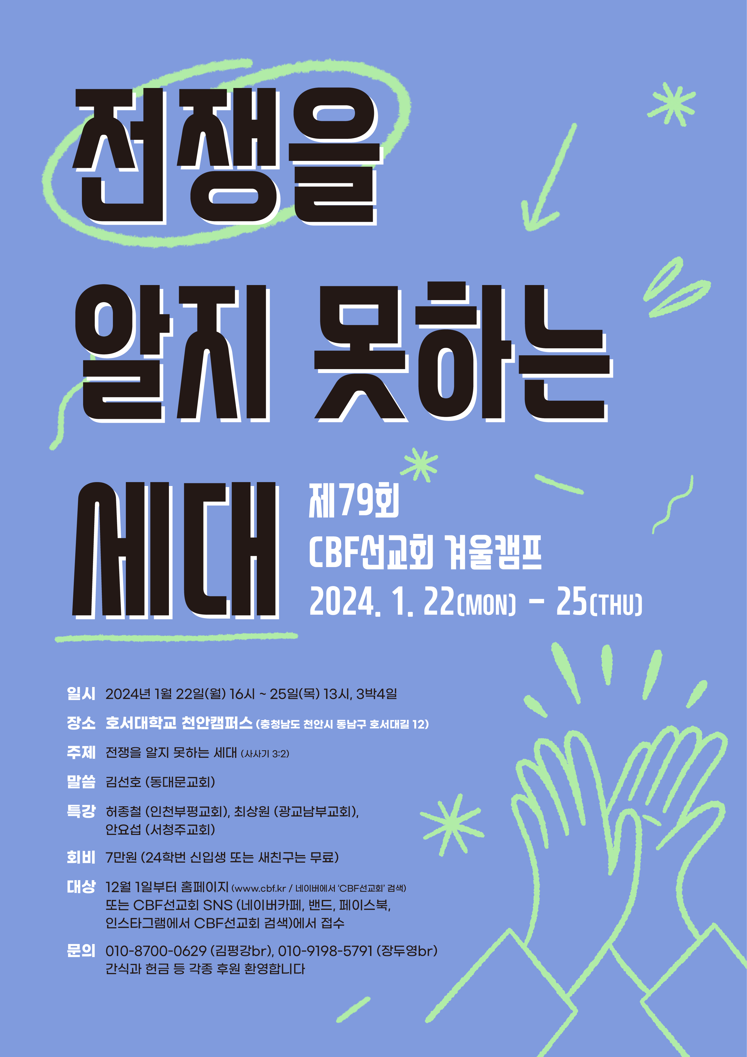 안녕하세요^^! 제79회 CBF선교회 겨울캠프 접수를 시작합니다. 아래 링크를 참조바랍니다.