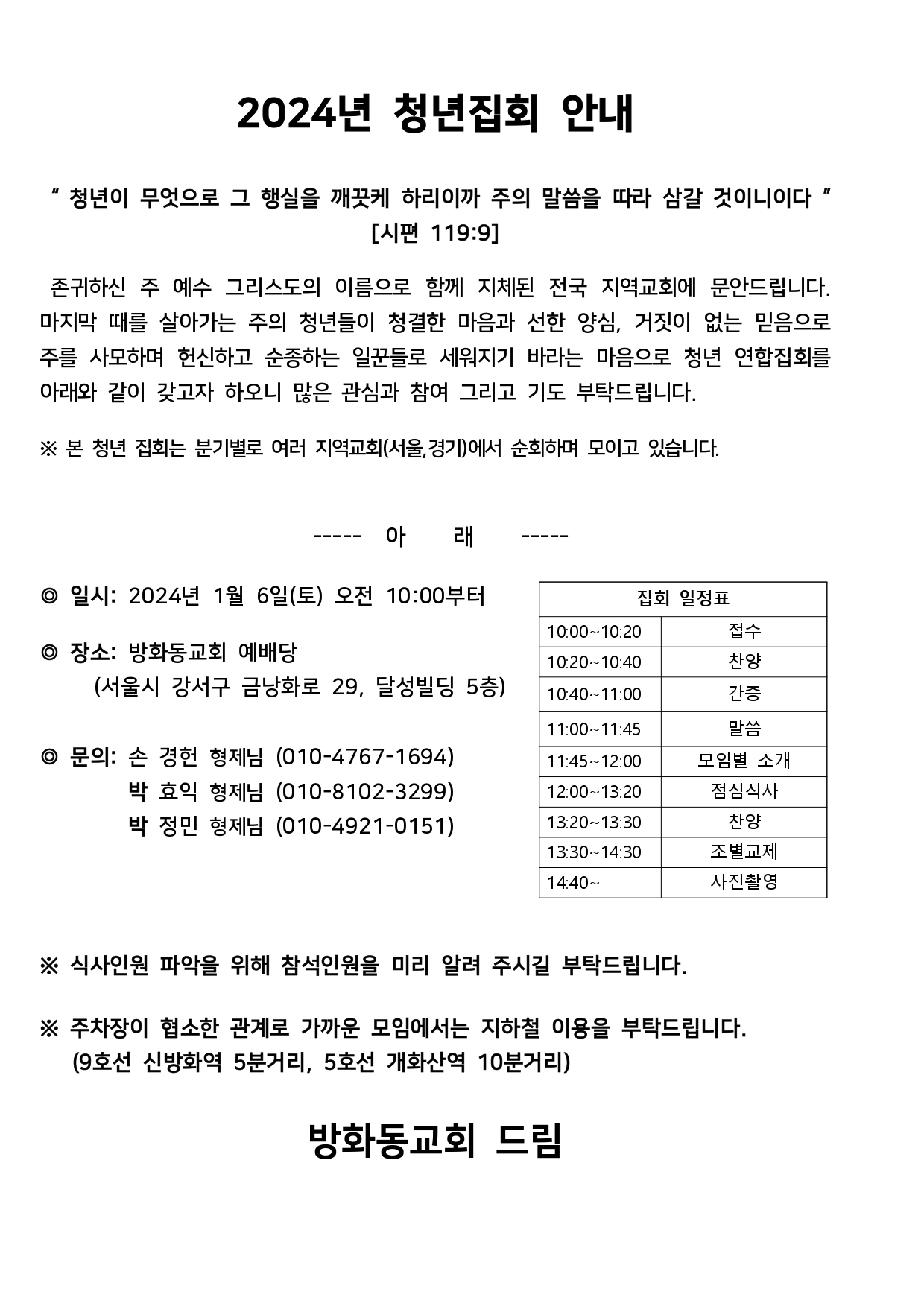 [강습과 세미나] 겨울 청년연합집회 (1월 6일)