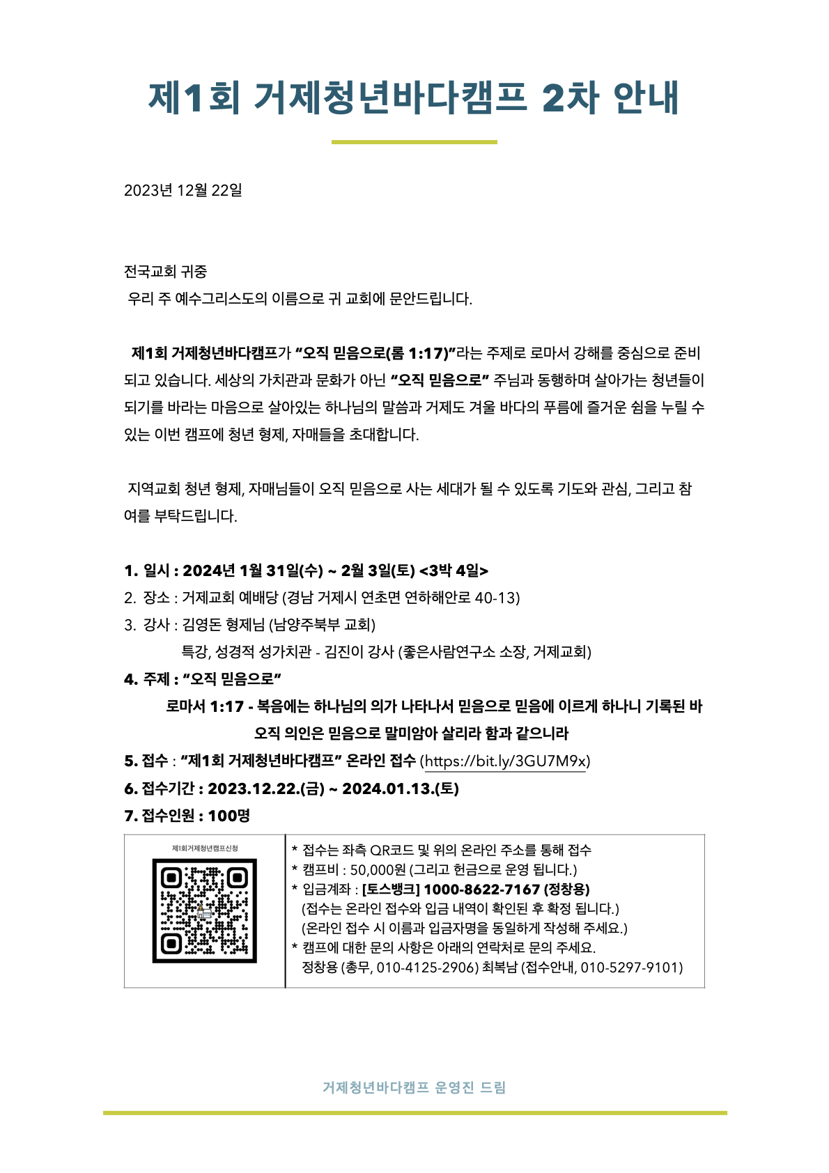 [캠프와 수련회] 제1회 거제청년바다캠프 2차 안내(최종)