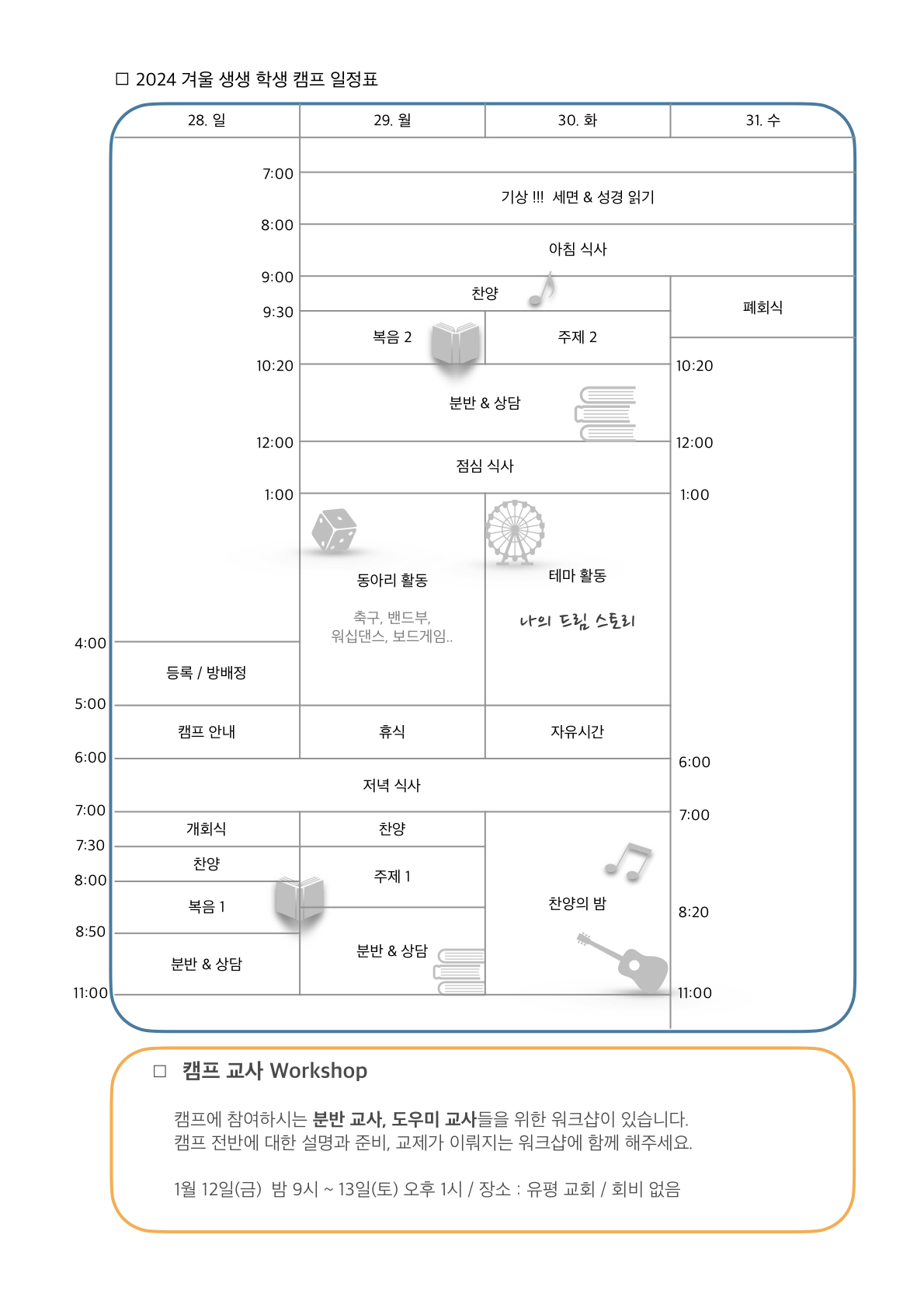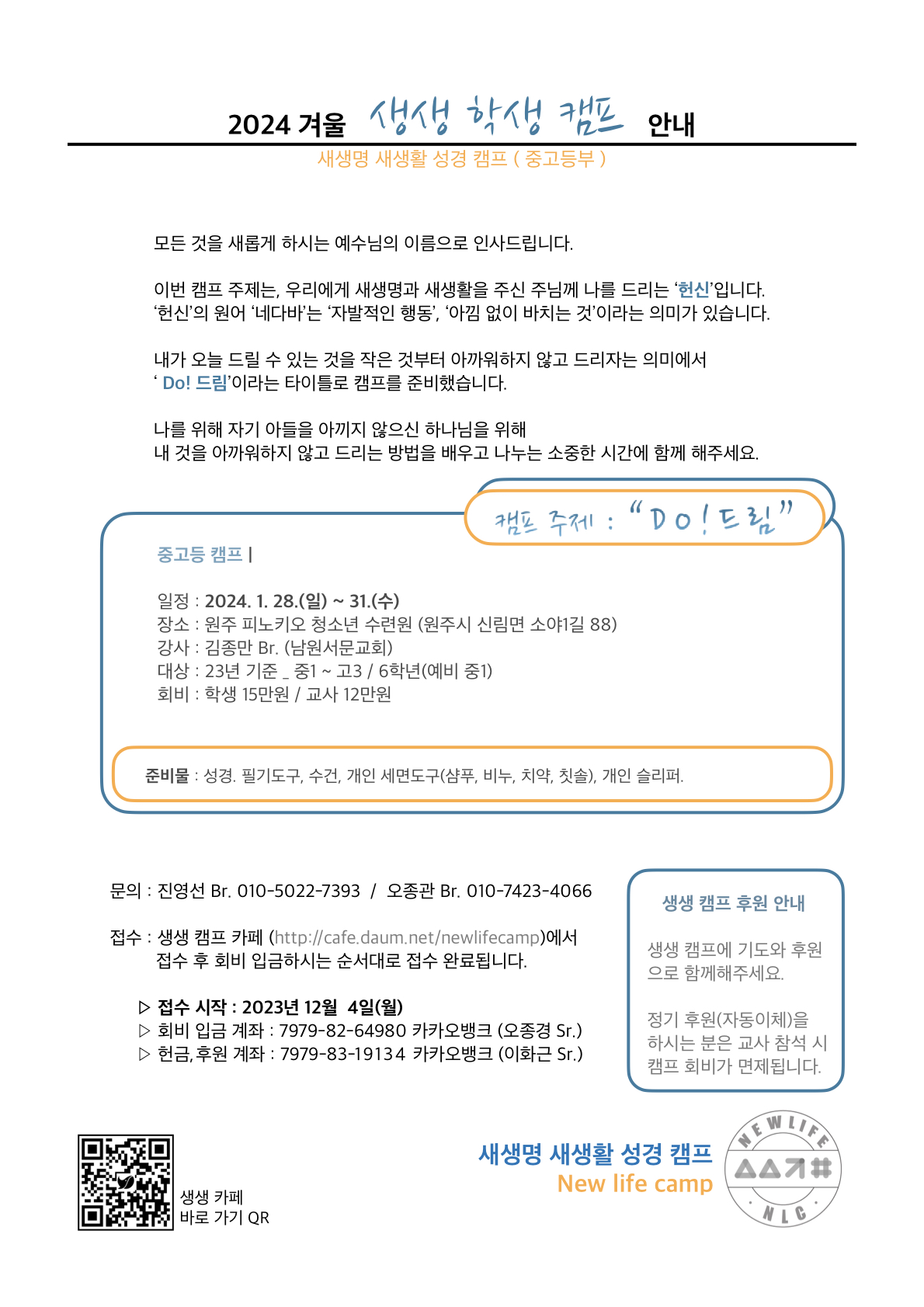 [캠프와 수련회] 2024 겨울 생생 학생 캠프(중,고등부)로 초대합니다~ (2차 공문)