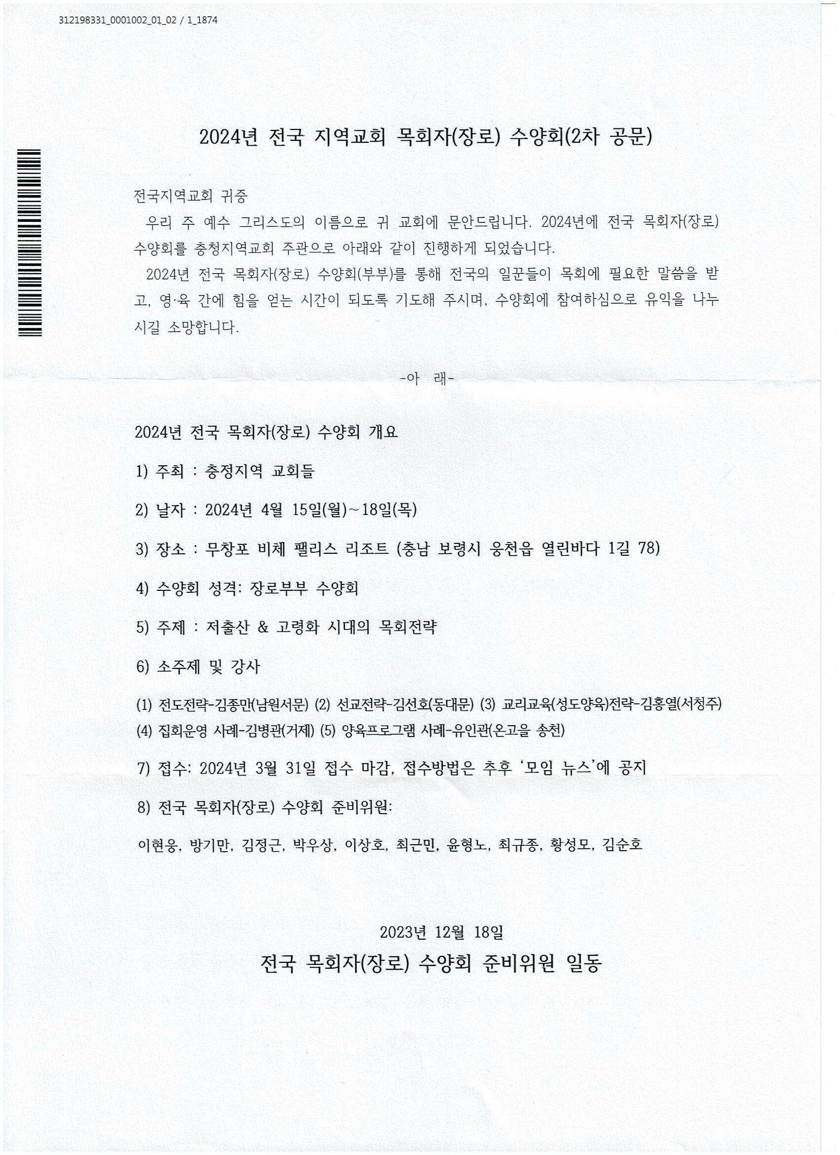 2024년 전국 지역교회 목회자(장로) 수양회 접수 안내