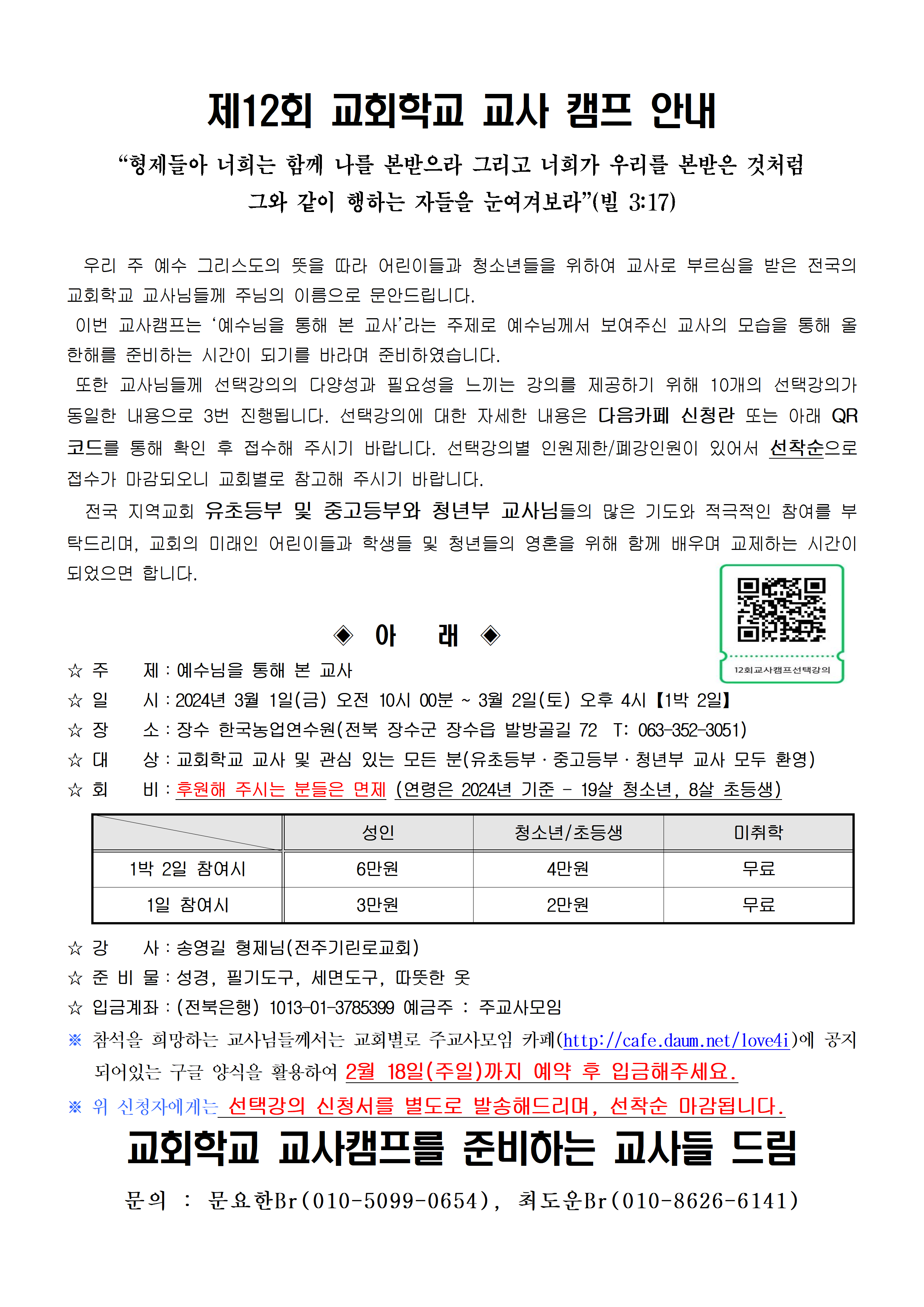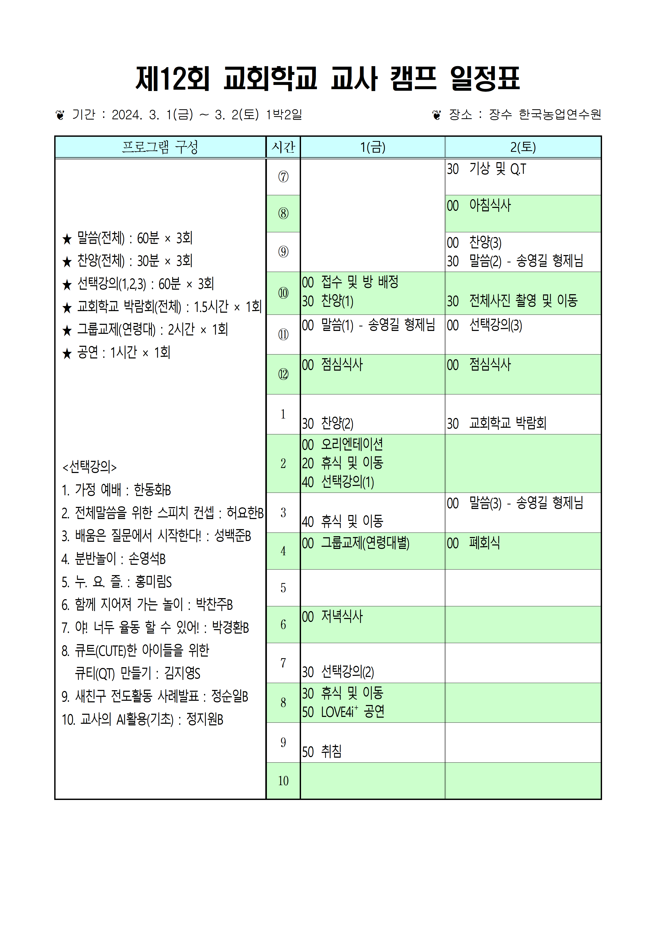 [캠프와 수련회] (장소변경)제12회 교회학교 교사캠프 재안내
