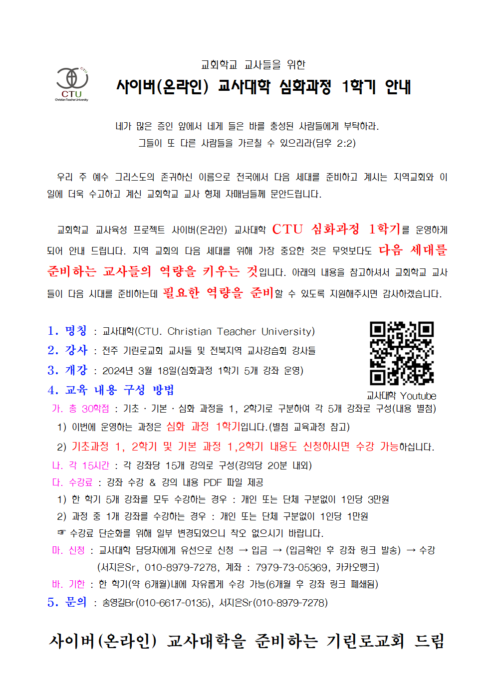 [강습과 세미나] 2024 사이버교사대학(CTU) 심화 1학기 안내