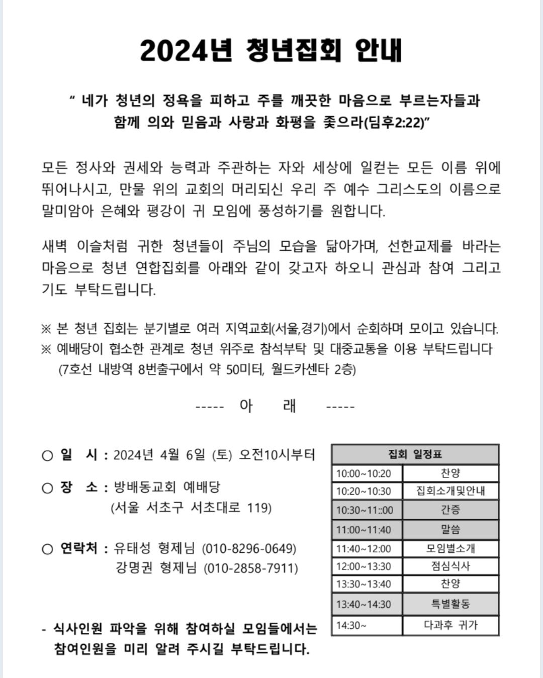 [강습과 세미나] 봄 청년연합집회 (4월 6일)
