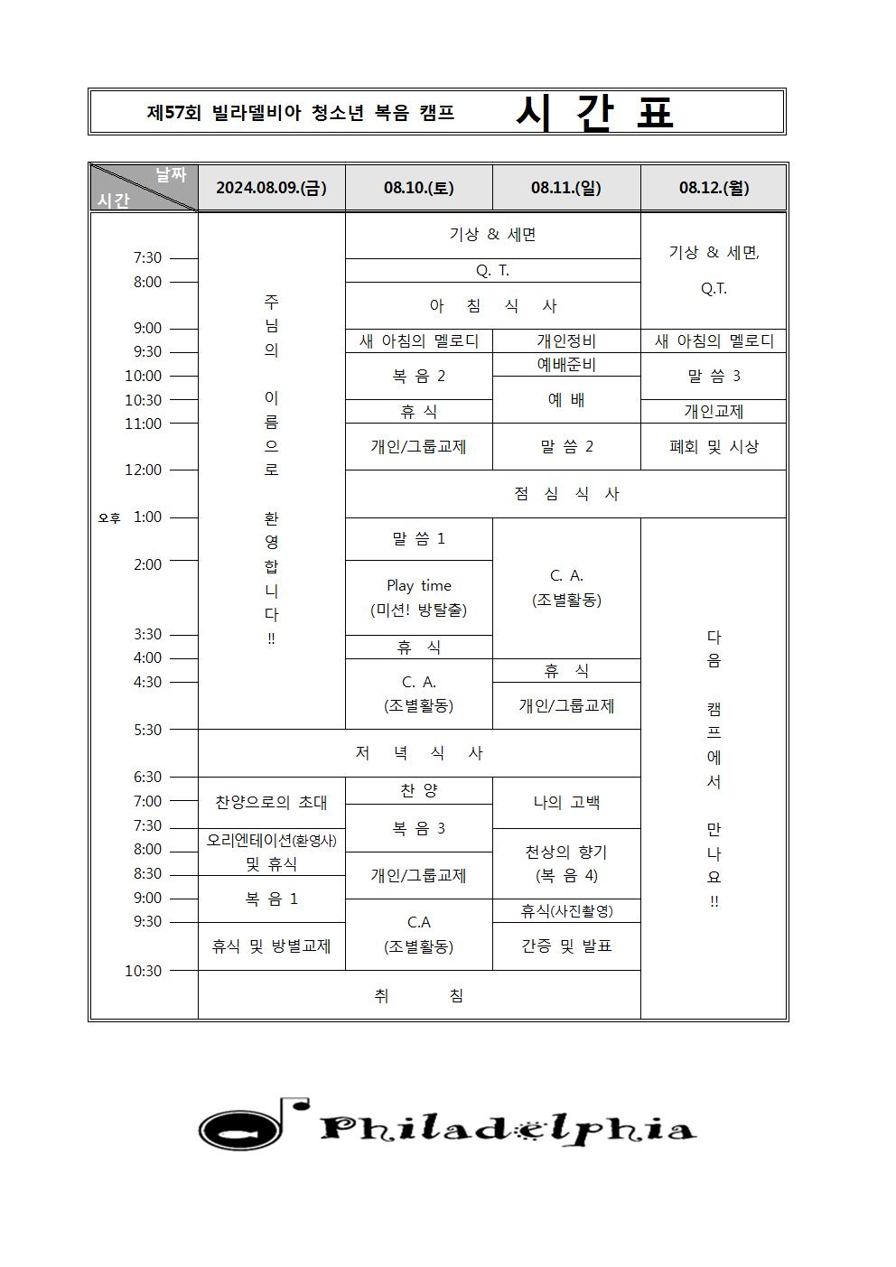 [캠프와 수련회] 제57회 빌라델비아 청소년 복음캠프[2차공문]