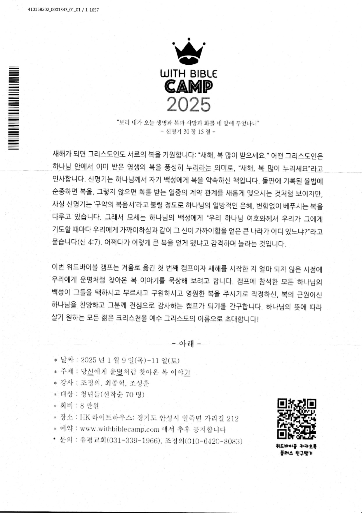 2025.1.6-9 겨울 전국청년연합캠프 1차 안내