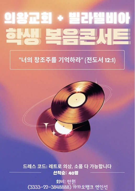 [강습과 세미나] [의왕교회+빌라델비아] 학생 복음 콘서트