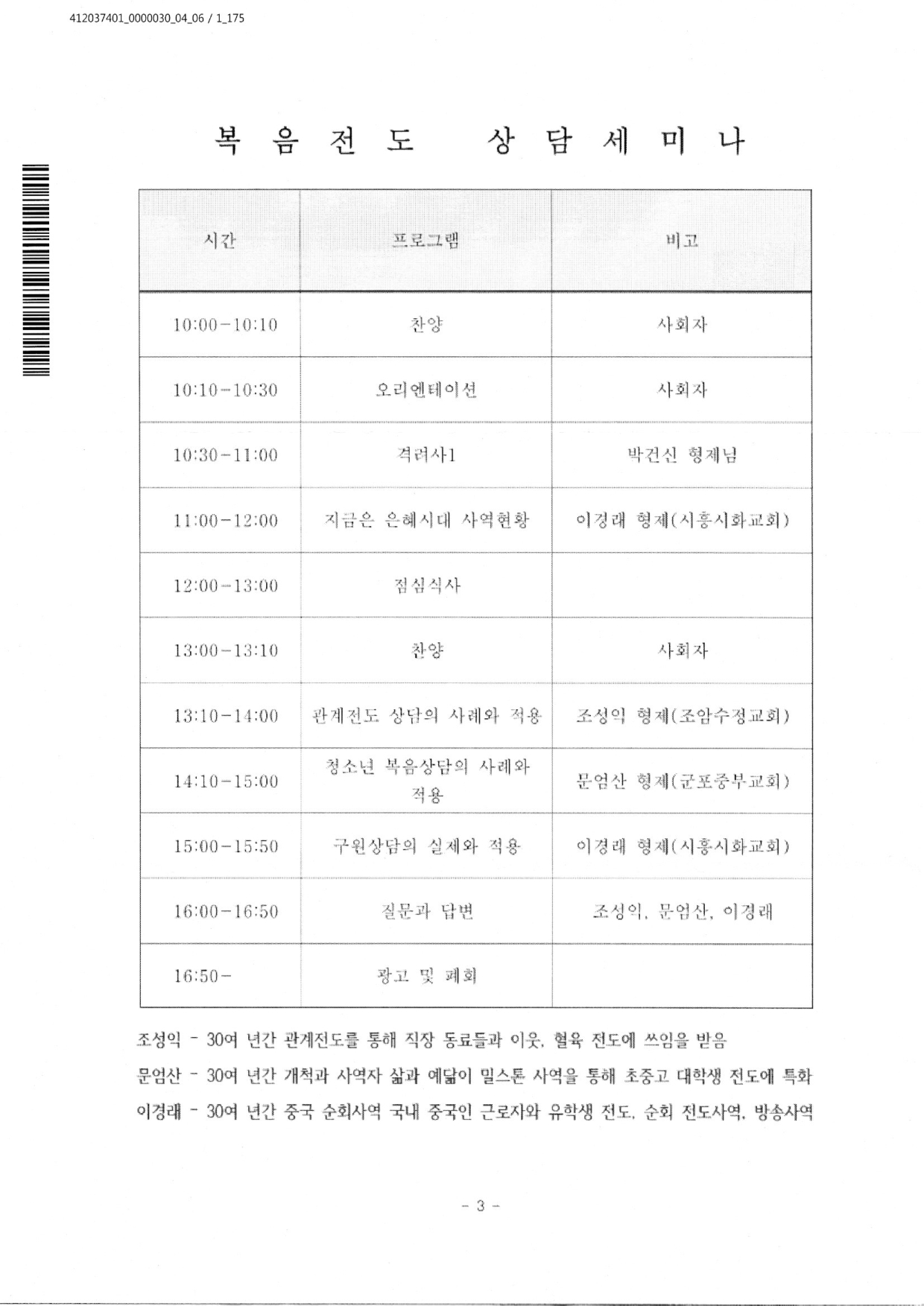 [강습과 세미나] 복음상담 세미나 (1월 4일)