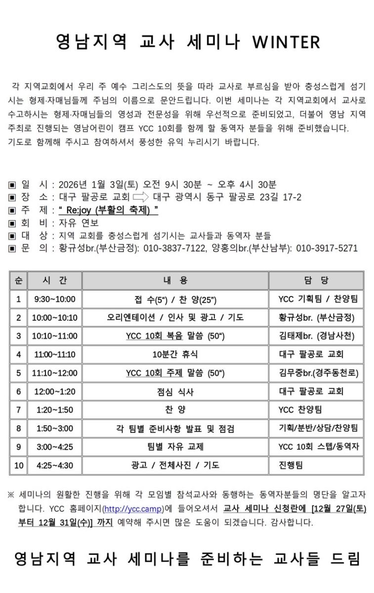 [강습과 세미나] 영남지역 교사 세미나 (1월 3일)
