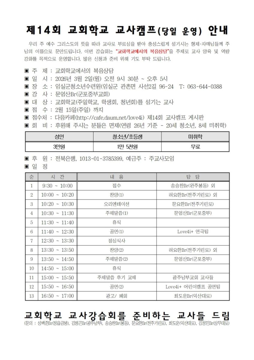 [강습과 세미나] 교회학교 교사캠프 (3월 2일)