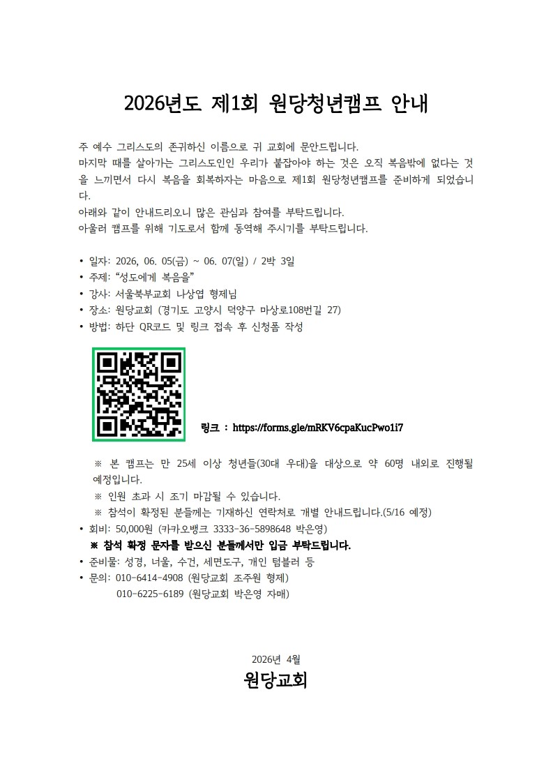 [캠프와 수련회] 제1회 원당청년캠프 (6월 5-7일)