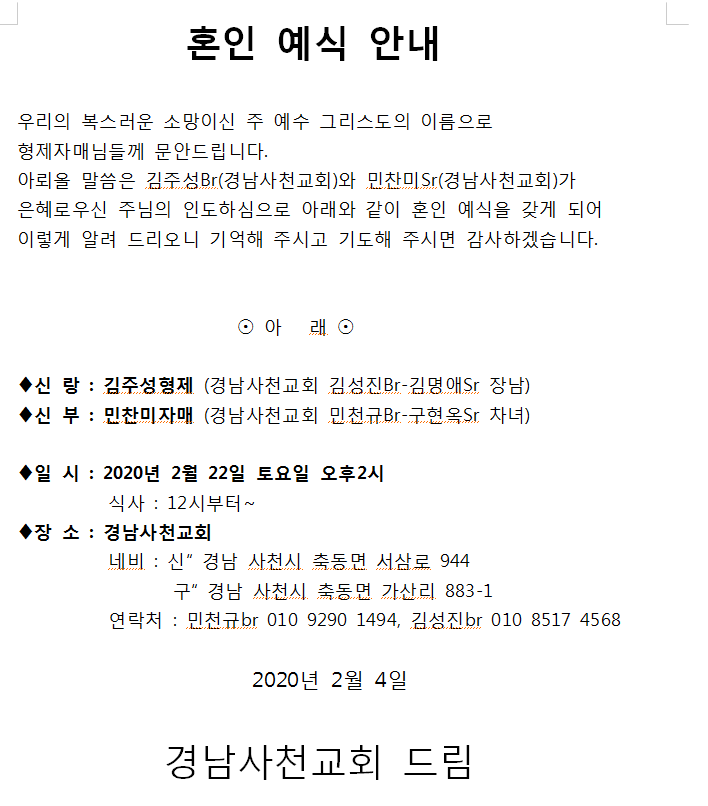 [기쁜소식] 김주성형제,민찬미자매(2월22일)
