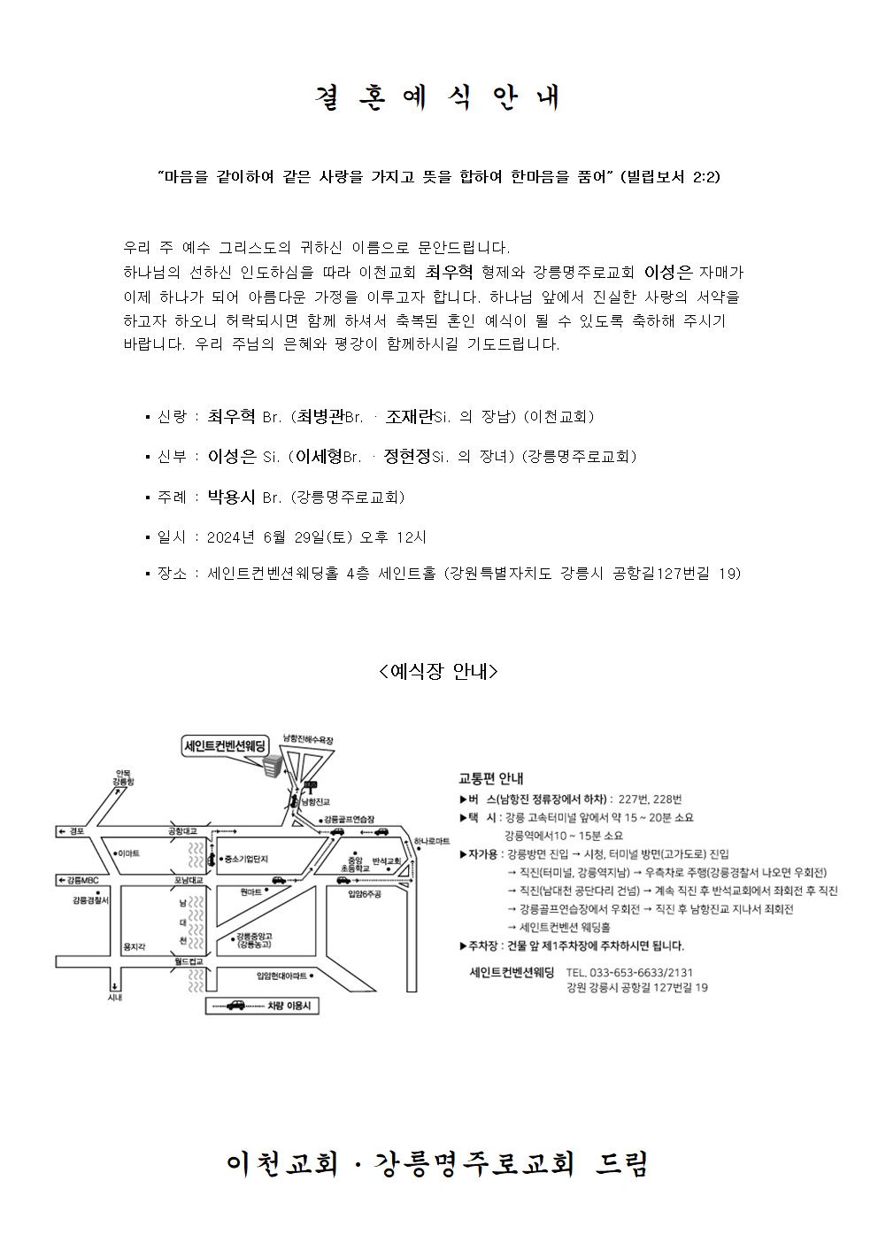 [기쁜소식] 최우혁 형제, 이성은 자매 (6월29일) 결혼예식