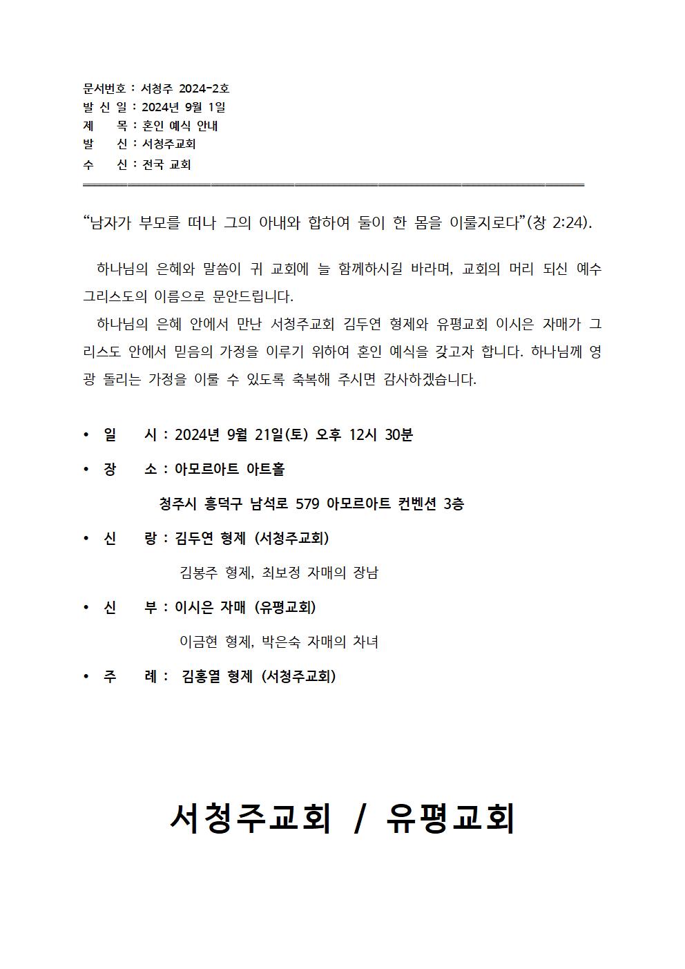 [기쁜소식] 김두연 형제, 이시은 자매 (9월21일) 결혼예식